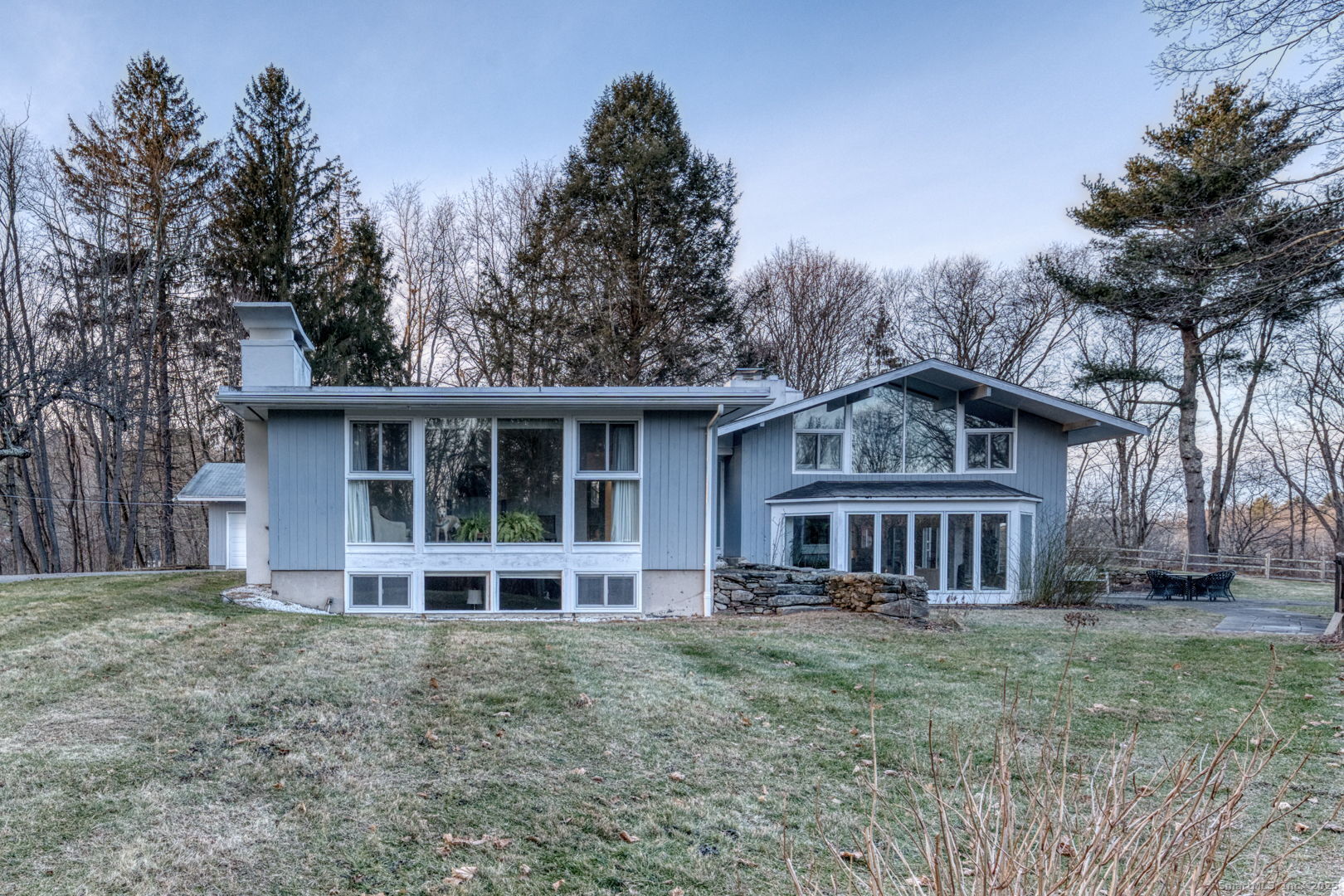 Welcome to Riverbank Farm, a beautiful 9 acres (over two lots) located on the Bantam River! A truly one of a kind property within Litchfield's Historic District with stunning views of rolling property down to the river. Set back from the road, up the circular drive this Mid Century beauty has a flexible floor plan that features 4 bedrooms, 4.5 baths and over 4,000 sqft. Entry floor: Enter the airy foyer with a glimpse of the meadow. The entry floor has one of two primary suites. This suite has a wall of windows, a gas fireplace, hardwood floors and French door access to a patio and the in-ground pool. This room has a large en-suite bath with double sink. Adjacent to the entry is one of the home office/library/den spaces with large windows and hardwood floors. Through the foyer and down a half flight of stairs is the... Heart of the Home: The heart of the home has walls of windows overlooking the rolling property, beautiful views, blue stone patio and pool with mature garden. The living space has room for two seating areas, one with a wood burning fireplace, perfect for cozy nights. The flexible dining area separating the kitchen and living spaces is the perfect setting for a family dinner or a large holiday meal. The spacious kitchen has a huge island allowing multiple cooks to work in the kitchen. Seating for three at the island is a favorite place to complete homework. The kitchen has custom cabinetry, granite counter tops, a gas cooktop, two ovens and built in microwave. Additional storage in the full walk in pantry keeps the open space clean and tidy. There is a laundry and half bath completing this part of the house. This section of the house features radiant heating to keep you comfortable year round. Just out side the two sets of French doors is a blue stone patio perfect for summer living and dining and easy access to the beautiful in ground heated pool all with stunning views of the rolling property. Lower level: In the separate lower level (below the entry level) you'll find a rec room, two additional sunny rooms and a full bath. This incredibly flexible space can be bedrooms for guests, a home gym or more quiet space, perfect for working from home. Upper level: Move to the upper level (above the living/dining/kitchen) to find two bedrooms and two bathrooms. The spacious bedrooms have large angular windows overlooking the property. The south facing bedroom has a dressing area, built in bookshelves and a fireplace for a perfect seating area. The north facing bedroom, the second primary has vaulted ceilings a full bath with walk in shower and walk in closet. What an incredible opportunity to own a waterfront property with a stable and paddocks within Litchfield's Historic District, all while connected to public utilities for peace of mind. Included in the sale is the adjacent separate 2.17 acre building lot at 401 South Street. The property also has a 3 stall barn, garden shed, 2 bay garage and whole home automatic generator. Don't miss the opportunity to enjoy this secluded, riverfront property just steps from Litchfield Center.