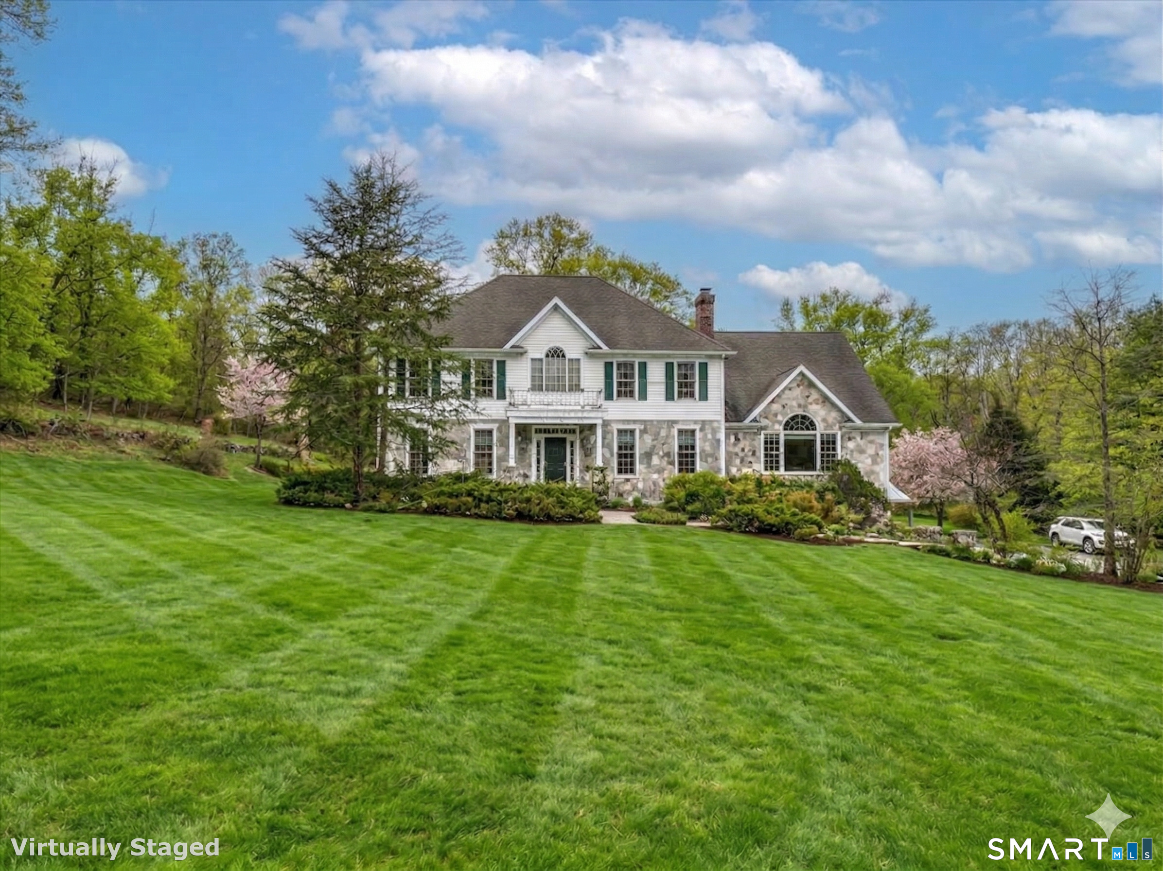 Set on 3+ acres,well-appointed Colonial Style Home custom built in 1999,offering 3,802 sq ft and +/-1,500 sq ft of fully finished walk-out Lower Level. Original owners. Custom built stone walkway leads you to the front door, opening up to an elegant two-story Foyer, set with granite tile. Hardwood flooring throughout. Main level features a study/office with two sets of French Doors for optimal privacy. Family Room with cathedral ceiling, lots of windows allowing for ample natural light, covered custom built blue pearl granite wood burning fireplace. The Sun Room, just off of the Family Room, offers additional living space. Large Eat-In-Kitchen with custom built cherry cabinetry, large granite center island, high end kitchen appliances including a professional large Viking propane gas fed stove. Dedicated laundry rm off of Kitchen. Deck off of Kitchen. Upper-Level features: large Primary Bedroom Suite, with 2 walk-in closets, large picture window overlooking backyard. Primary Bath features a jetted tub, stall shower+double vanity. Three additional Bedrooms, incl 1 Bedroom Ensuite. Full Hall Bath with two separate vanities. Finished, walk-out Lower-Level offers ample living space - possible use as a Recreation Room/Fitness area/Family Room. Full Bath in the LL. In the Entry way from the Garage to the Home, the wall is lined with Custom Built Cabinetry. Generator hook up. 400 AMP electrical w/surge protection. Wired for security system-all floors. Three Car Attached Garage The Exterior features extensive stonework, stone walls, wood deck, and a large 4800 sq ft vegetable garden area. Additional utilities: 240 feet deep water Well (back yard) with new 2026 pump, Septic System (front yard), Oil Heat with 550-gallon tank, Central Air (4 zones). Newly Constructed in 1999, custom built for the current owners. The key construction details include: Constructed with 6" x 2" Douglas Fir studs - R-19 and R-38 insulation - Steel Reinforced foundations with 400 PSI cement - Oversized Radon Mitigation system in place - Oakwood flooring throughout home: set on 3/4" subfloor plywood, glued + fastened to joists with 3.5" screws - Ceramic and Granite Tiles set on cement subfloor. NOTE: House is wired for security system only (not currently in use). The House is SOLD AS IS.
