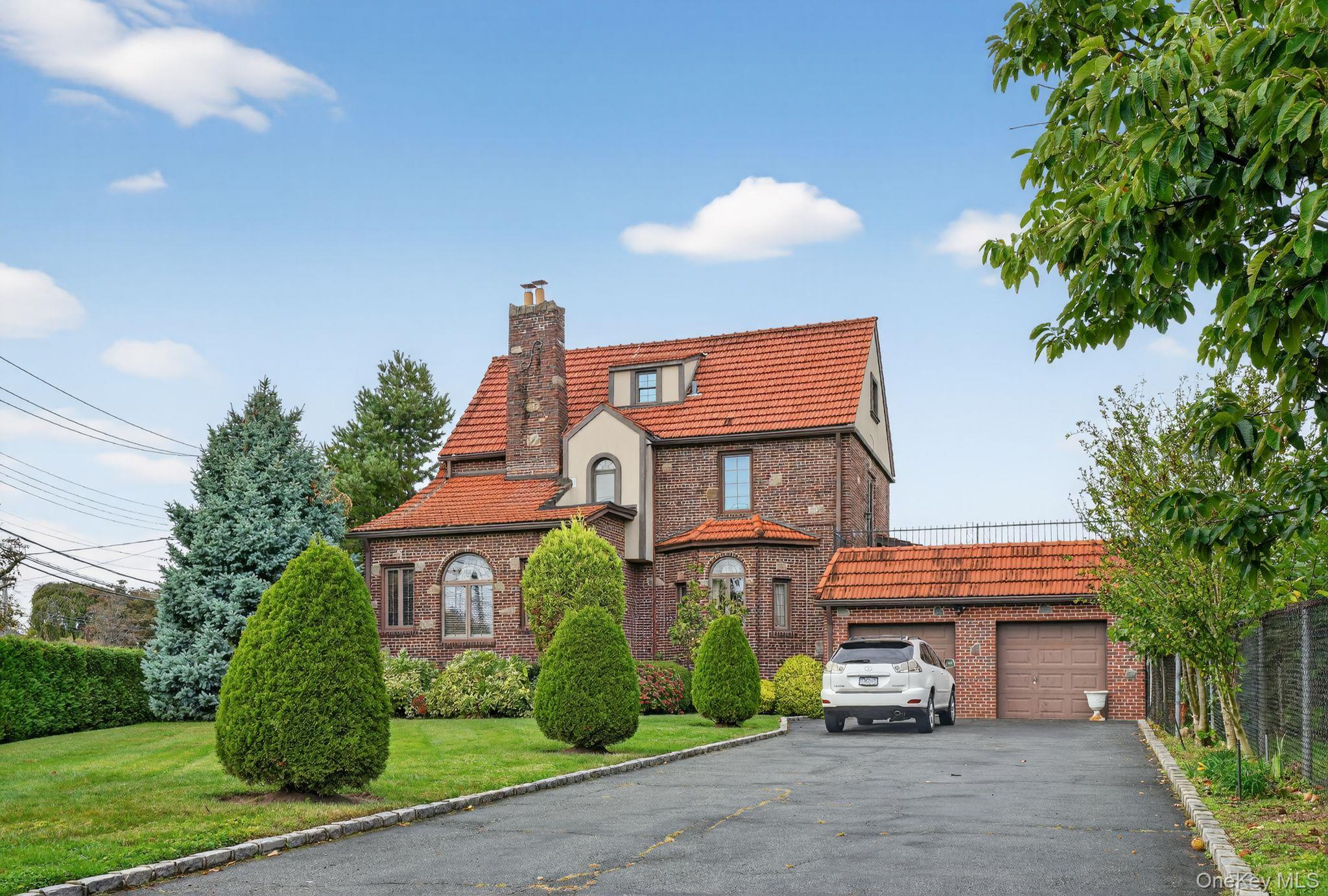 Large Landscaped Brick three level Tudor with 4-5 bedrooms, 2 full bath and 1 half bath with finished basement. Very large extended 2 car garage long private driveway with parking for 10 cars. A must see. Very rare find. Amazing corner property almosst 8,000 square feet in the heart of Malba.