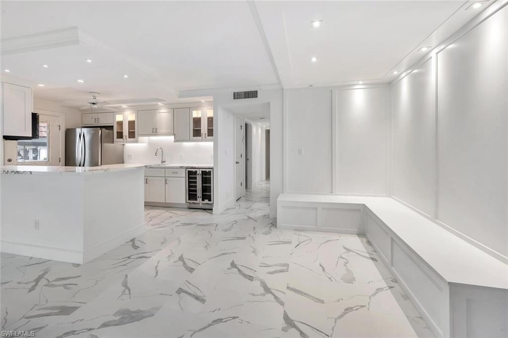 GREAT opportunity to lease long term with an OPTION to purchase! This TOTALLY REMODELED 2 Bedroom, 2 Bath 1st floor corner/end-unit offers exceptional upgrades throughout, including NEW lighted glass front cabinets, NEW marble counter tops, a spacious breakfast bar, NEW built-in dining banket, beverage/wine cooler, the NEWEST all-in-one washer/dryer, NEW custom closets, NEW appliances, NEW Plantation shutters on ALL windows, and NEW light tile flooring throughout. The Florida room is part of the NEW air-conditioned interior, providing additional living space with storage/seating, Hurricane Impact Resistant Sliding Doors, and screens to enjoy the Bay breezes. This waterfront community offers an outstanding lifestyle with boat docks available for lease, fish cleaning station, kayak & canoe storage, grilling stations, covered parking with exterior private storage, and a community pool & Tiki hut overlooking the Bay and boat docks. The Moorings resident beach park is available for membership, as well as the nearby Moorings Country Club for golfers. Ideally located within short walking distance to Venetian Village shops, restaurants, and the beach, with easy access to Waterside Shops, 5th Avenue, and 3rd Street dining, shopping, and beaches. Covered carport Parking #26 included.