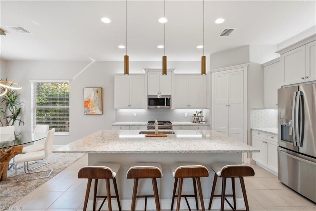 BEST VALUE in Valencia Bonita with your own private pool! Step into a world where everyday living feels like a private resort - welcome to 28422 Capraia Drive, an exquisitely upgraded Sierra model. From the moment you enter, 11-foot coffered ceilings, custom crown molding, and sun-filled interiors draw your eye to a breathtaking private heated saltwater pool surrounded by lush, professionally uplighted tropical landscaping. The open-concept living space is anchored by a chef-inspired gourmet kitchen featuring quartz countertops, premium appliances, soft-close cabinetry, pull-out drawers, a walk-in pantry, and an oversized island perfect for elevated entertaining. The versatile third bedroom features elegant French doors, allowing it to easily function as a home office, den, or flex space to suit your lifestyle needs. Throughout the home you will find upgraded hi-hat lighting, added electrical, a Culligan water softener, brand-new LG washer and dryer, and an air-conditioned, insulated garage to ensure modern comfort and convenience. Impact resistant windows and doors as well as a motorized full panel screen indoors to allow for extra privacy and shade from lanai and pool. An expanded paver driveway & immense upgraded landscaping completes the home’s polished curb appeal. Set within Valencia Bonita, a premier 55+ gated luxury community, residents enjoy a 45,000-square-foot clubhouse, state-of-the-art fitness center, full-service spa, restaurant, resort-style pools, pickleball, tennis, bocce, and a dedicated full time lifestyle director—delivering an unparalleled active living experience to stay active, social, and engaged! And now just minutes from the newly anticipated Midtown Bonita - offering ample amounts of dining, shopping, entertainment and so much more! Make an offer on this gorgeous home - Sellers are motivated!
