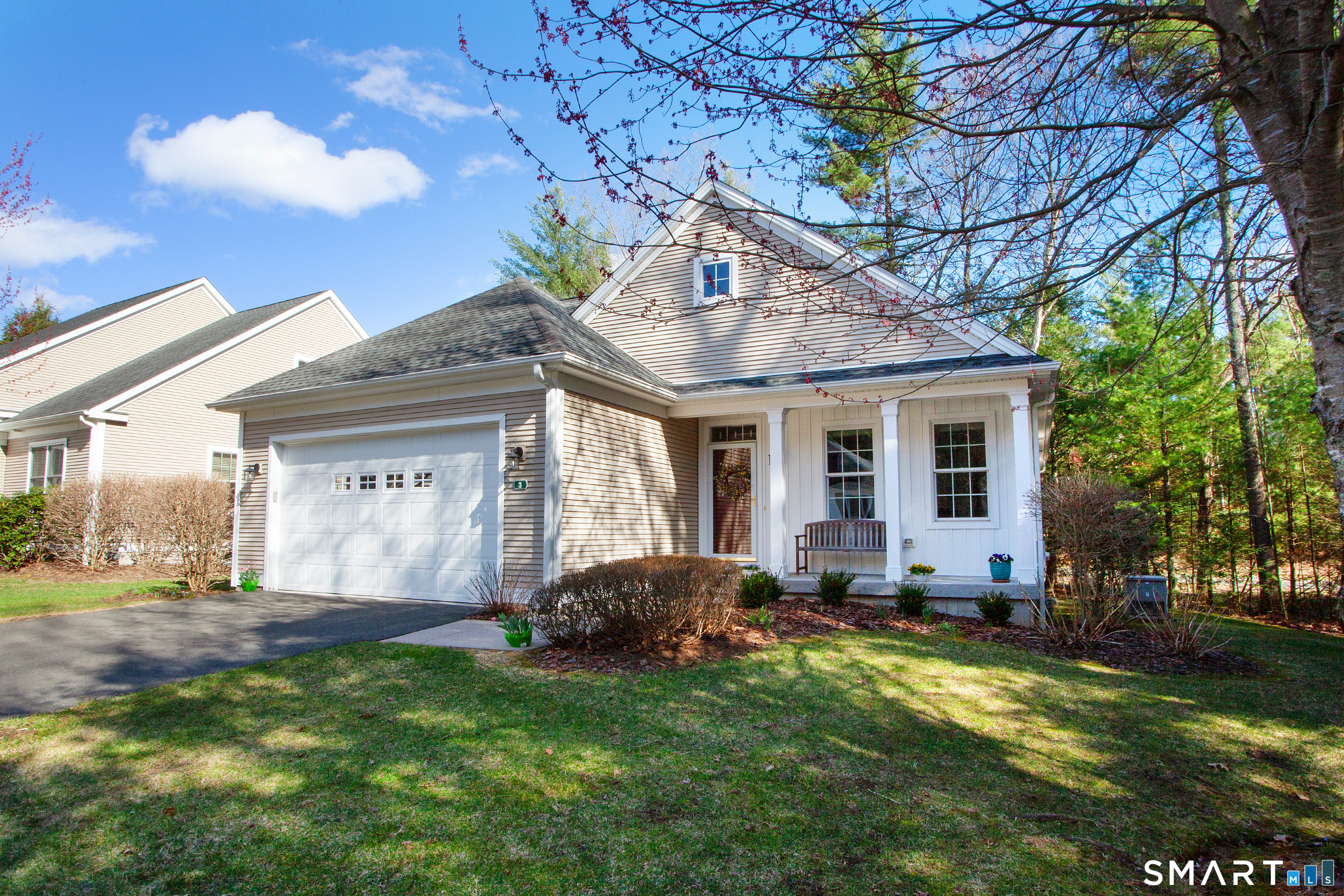 A rare opportunity to own in Simsbury's highly sought after 55+ community of Powder Forest, this pristine "Ardmore" model end unit offers the perfect blend of comfort, space, and privacy. Ideally situated at the edge of the community, the home abuts peaceful forest, creating a quiet & scenic backdrop. Inside, gleaming hardwood floors flow throughout, enhancing the bright, open concept layout. The spacious kitchen features granite countertops, ample cabinetry, & generous prep space, seamlessly opening to the dining & living areas-ideal for both everyday living and entertaining. The sun-filled living room is anchored by a cozy gas fireplace & features French doors that open directly to the outdoor deck, inviting in natural light while showcasing the surrounding landscape. The primary suite offers an en-suite bath & generous closet space. A second spacious bedroom & additional full bath provide comfort for guests or flexible use as a home office. The finished basement expands the living space & offers excellent storage options. Additional highlights include a large two car garage & a private deck, perfect for relaxing or enjoying the tranquil setting. Major updates included the furnace, water heater, & air conditioner-see list of upgrades. Located just minutes from Simsbury Center, this home provides easy access to local favorites including the Simsbury Meadows Performing Arts Center, acclaimed restaurants, Rails to Trails, nearby golf courses, & more. Don't miss this one! Beautiful freestanding unit in the highly desirable Powder Forest community. Don't miss your opportunity to own this exceptional property.