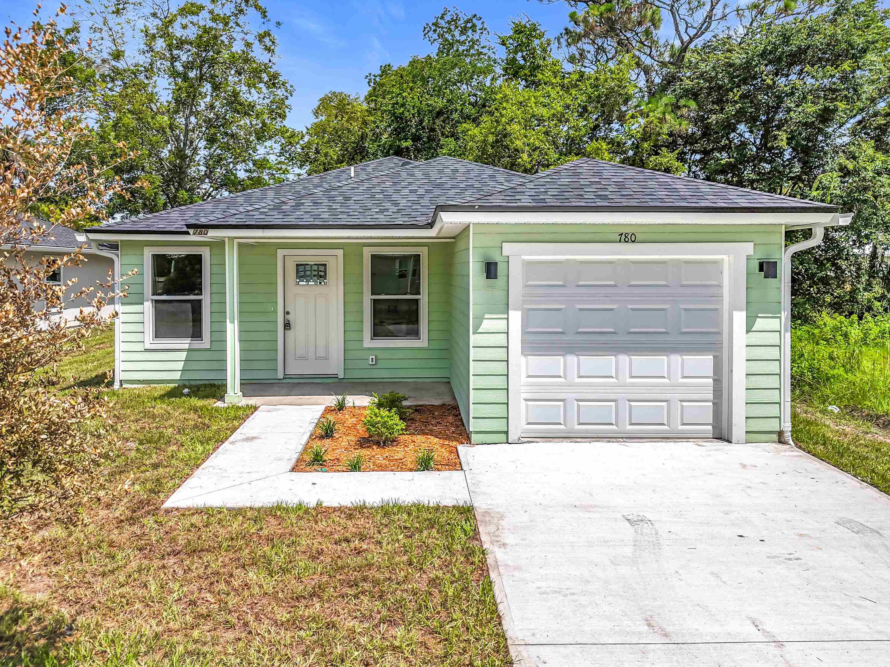New Construction - 2025 - Just Completed. This 3 Bed/2 Bath Home has an Open Floor Plan - Living/Kitchen Space connected by a spacious breakfast bar. The Kitchen boasts a Large Pantry and Granite Countertops with White Shaker, Soft Close Cabinets. Stainless Steel Appliances to be installed prior to Closing. Vinyl Plank Flooring throughout with Tiled Bathrooms. Covered Rear Patio & Dedicated Laundry Room are just a few features that make this Home a great option for Students, Families or anyone looking for a New Construction Home in St Augustine. House is on City Water & Sewer. Just over 1 mile from Downtown St Augustine/Flagler College & just 5 mins to the Vilano Bridge. May be Eligible for USDA Loan with 0% Down