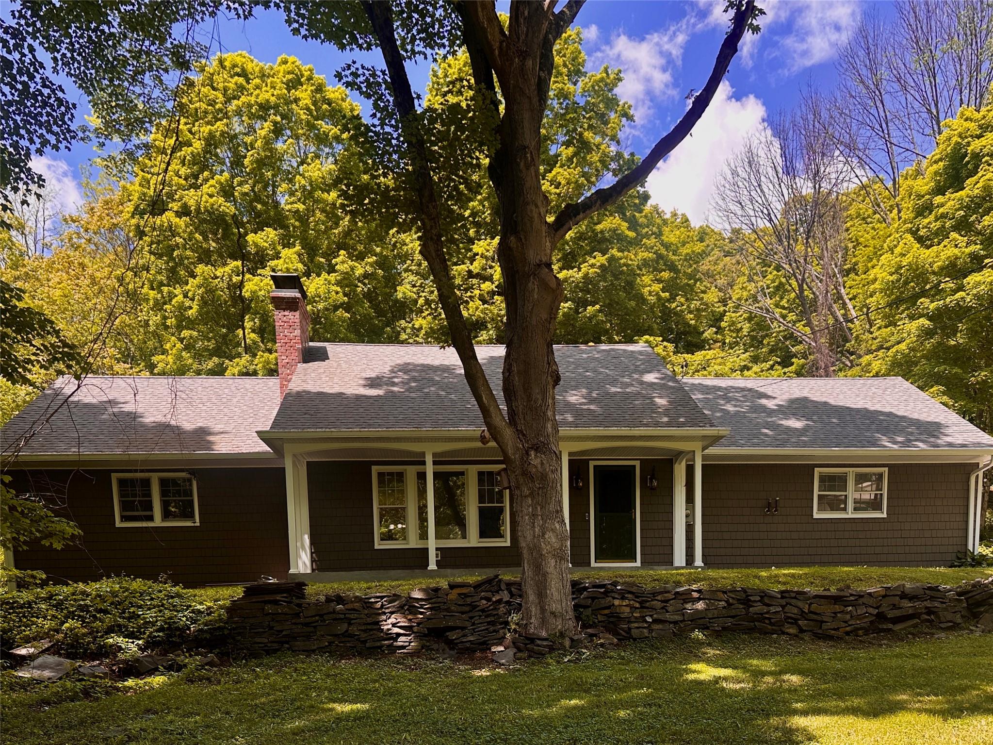This is the loveliest country home you'll find! The beautiful 3-acre lot is a picture-perfect fresh air delight. No neighbors behind you with about 250 acres of undeveloped woods, rolling hills, and wildlife. No neighbors in front of you either, just a babbling stream that sings to your delight as you side on your "just re-done" front porch. Wide yards and mature trees surround the house's front, sides, and back. Of course, the extra-long deck can accommodate all friends and family that will be visiting. When you are inside, sunshine and nature are framed peacefully in the oversized windows. The kitchen is well equipped for any chef! A 6-burner stainless steel stove with outside exhaust, a new stainless steel Frigidaire Galley refrigerator, and updated cabinetry are yours for the asking! The living room hosts the brick-front wood-burning fireplace for the chilly days and nights ahead, and wide plank refinished hardwood floors. Two - 1st floor bedrooms with hardwood floors, a laundry room, and a full bathroom make it easy for 1-level living. The 2nd floor is one gigantic room with a full bathroom, oversized windows, and access to the unfinished (and huge) walk-in attic.