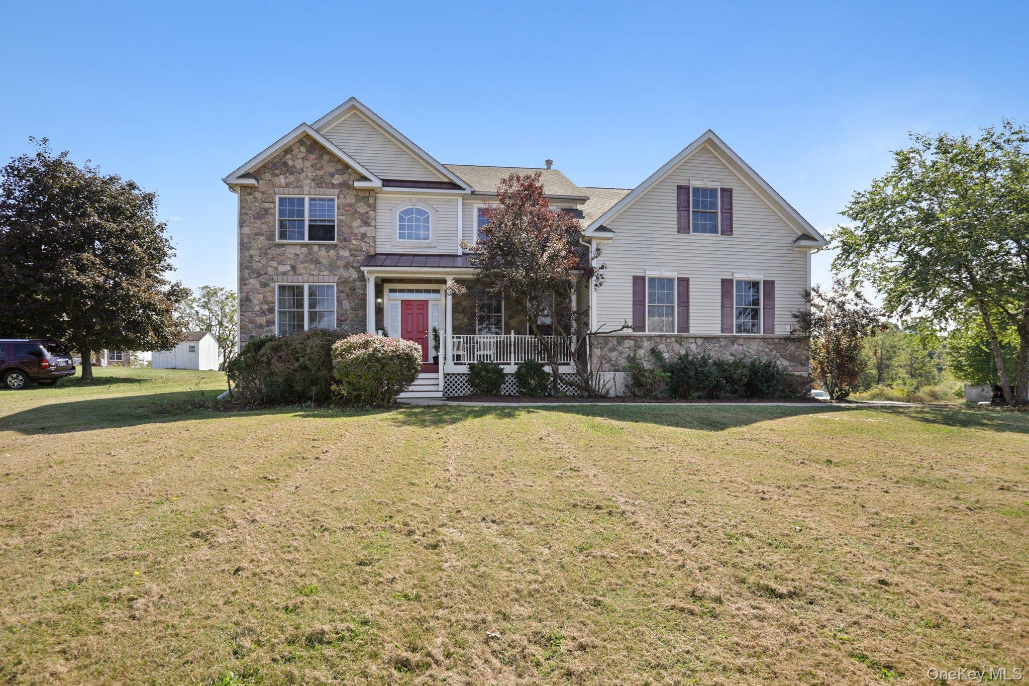 Welcome to this Colonial home that offers space, comfort, and potential. Set in a convenient location with attractive views, this property is ideal for buyers looking for a solid house with room to update and make it their own. The first floor features hardwood flooring and nine-foot ceilings, creating a bright and open feel. The family room stands out with its floor-to-ceiling stone fireplace and vaulted ceilings, a focal point that gives the space character and warmth. The kitchen includes granite countertops, a center island, and a breakfast area with sliding doors that lead to the deck. The layout is provides plenty of space for cooking and entertaining. Spacious formal dining room and living room. A bonus multipurpose room on the first floor provides flexibility—whether as an office, playroom, or workout space. A half bath completes the first level. Upstairs, there are four bedrooms, including a primary suite with a private bath and its own bonus room. The bedrooms are well-sized, offering natural light and storage. The floor plan allows for comfortable living while leaving room for updates and personalization. Outdoor spaces include a deck overlooking the property and views that add to the appeal with AG pool. The yard offers space for recreation or gardening, enjoy the 1.2 acres. This home is in a very accessible location—just minutes to major roadways, public transportation, shopping centers, restaurants, and the Woodbury Commons outlet. The setting makes daily commuting and weekend errands simple and efficient.