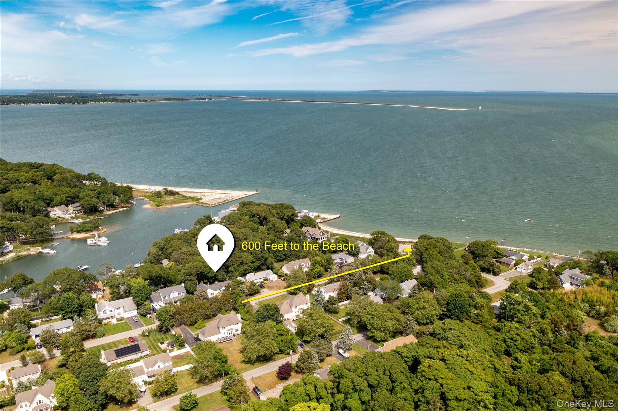 This expanded and renovated ranch is situated 600 feet from a sandy bay beach overlooking Orient Harbor. The home has hardwood floors throughout and the open concept living room, dining room and kitchen are perfect for entertaining and filled with abundant natural light. The home has a large primary bedroom with sliding glass doors that exit to the rear yard, a sizable walk in closet and a large bathroom with separate shower and soaking tub. The guest bedroom has a connected full bathroom with additional access from the hallway for guests. In addition to the attached 1 car garage, the home has central air conditioning and is connected to natural gas. This residence is also part of the Orient and East Marion Park District, offering access to nearby beaches only available to residents in this district.