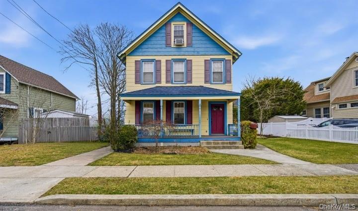 Step into timeless charm and character in this stunning ornate 3-story home in Islip that perfectly blends classic craftsmanship with modern comforts. From the moment you arrive, the eclectic curb appeal and welcoming front porch set the tone for a home that truly puts a smile on your face. Inside, you’ll find beautiful wide-plank wood floors, detailed moldings, french doors and elegant wainscoting that highlight the home's historic charm. The spacious kitchen features heated porcelain flooring, perfect for cozy mornings, while ornate cast iron radiators add both warmth and distinctive character throughout. This versatile home offers 4–5 bedrooms and 2 full bathrooms, including a relaxing Jacuzzi tub. Enjoy movie nights with the home theater system, and take advantage of the partial basement for additional storage. Major updates provide peace of mind with gas heat, a 5-year-old burner, separate hot water heater, and a roof approximately 10 years old. The home also includes solar panels with a transferable 23-year lease, helping to keep energy costs down. Outside, the property continues to impress with beautiful mature plantings and a charming English-style garden, creating the perfect setting for entertaining or simply enjoying quiet moments of tranquility. Completing the property is a 1-car detached garage. A truly special home filled with warmth, personality, and timeless appeal—a rare find in Islip.