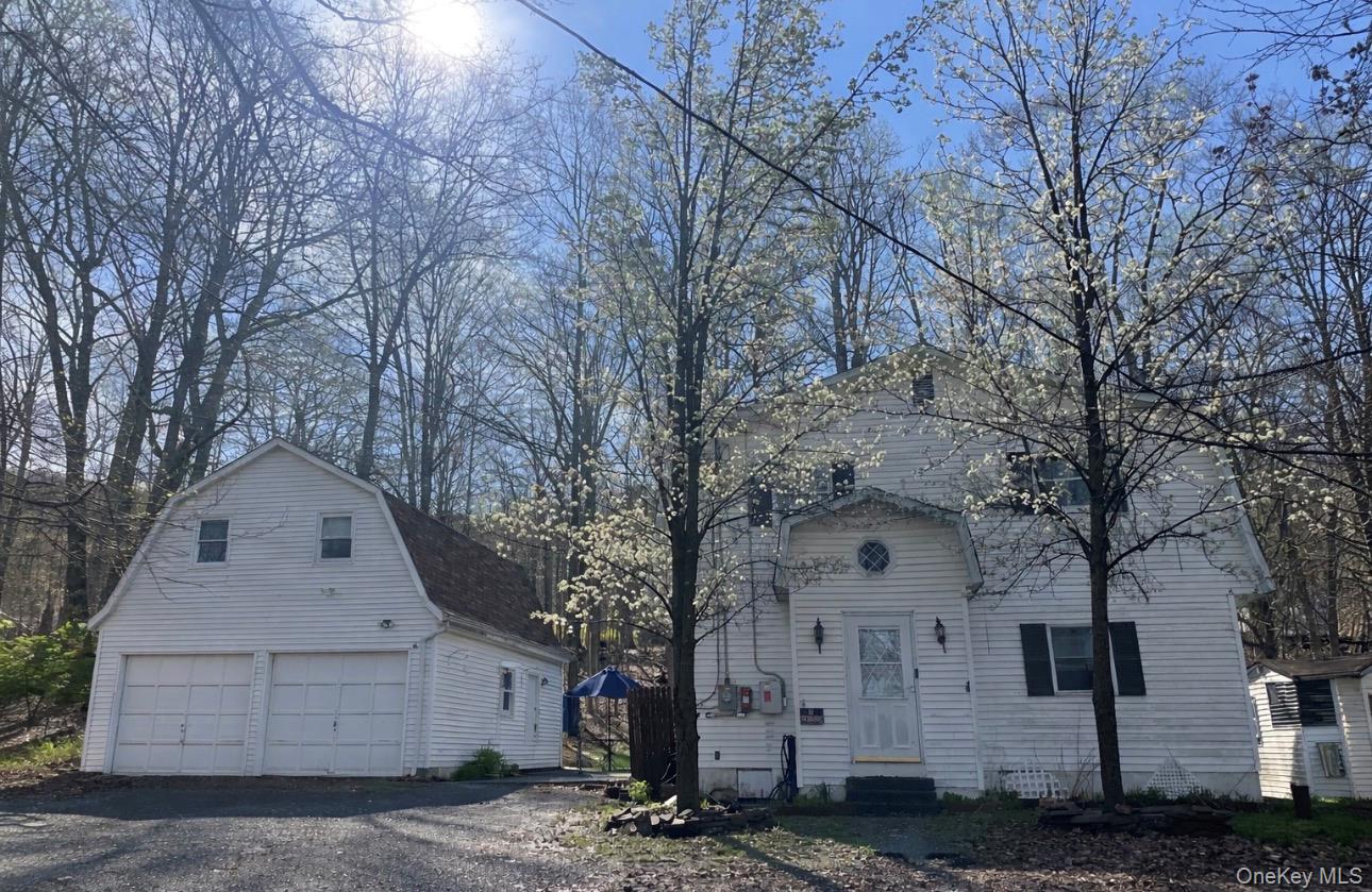 Unique property offering space, flexibility, and privacy in quiet Mountain Lodge Park setting. One of the standout features is the oversized detached garage with a large open loft space above. Possibilities are endless providing excellent potential for a workshop, studio, hobby space, extensive storage, or even additional living space for multi-generational living. The main home offers a spacious layout with a large living room, kitchen with ample cabinetry and gas cooking, a formal dining room area and a bonus area that could easily function as another bedroom, office, or additional living space. A convenient half bath adds everyday functionality. Upstairs you'll find four bedrooms-two of which share the Jack-and-Jill bathroom with laundry access for convenience. Outside, the patio and grill area between the home and garage create a private outdoor space ideal for relaxing or entertaining. Situated on a private road with minimal nearby homes, this property offers a quiet setting while still being within reasonable distance to shopping, parks, and commuter routes. With its versatile layout and additional garage space, this home presents a great opportunity for buyers looking to personalize a property and create something special using its unique features! Updates include new roof 3.5 years ago, reverse osmosis, water softener, UV light, solar panels, and attic pull down access.