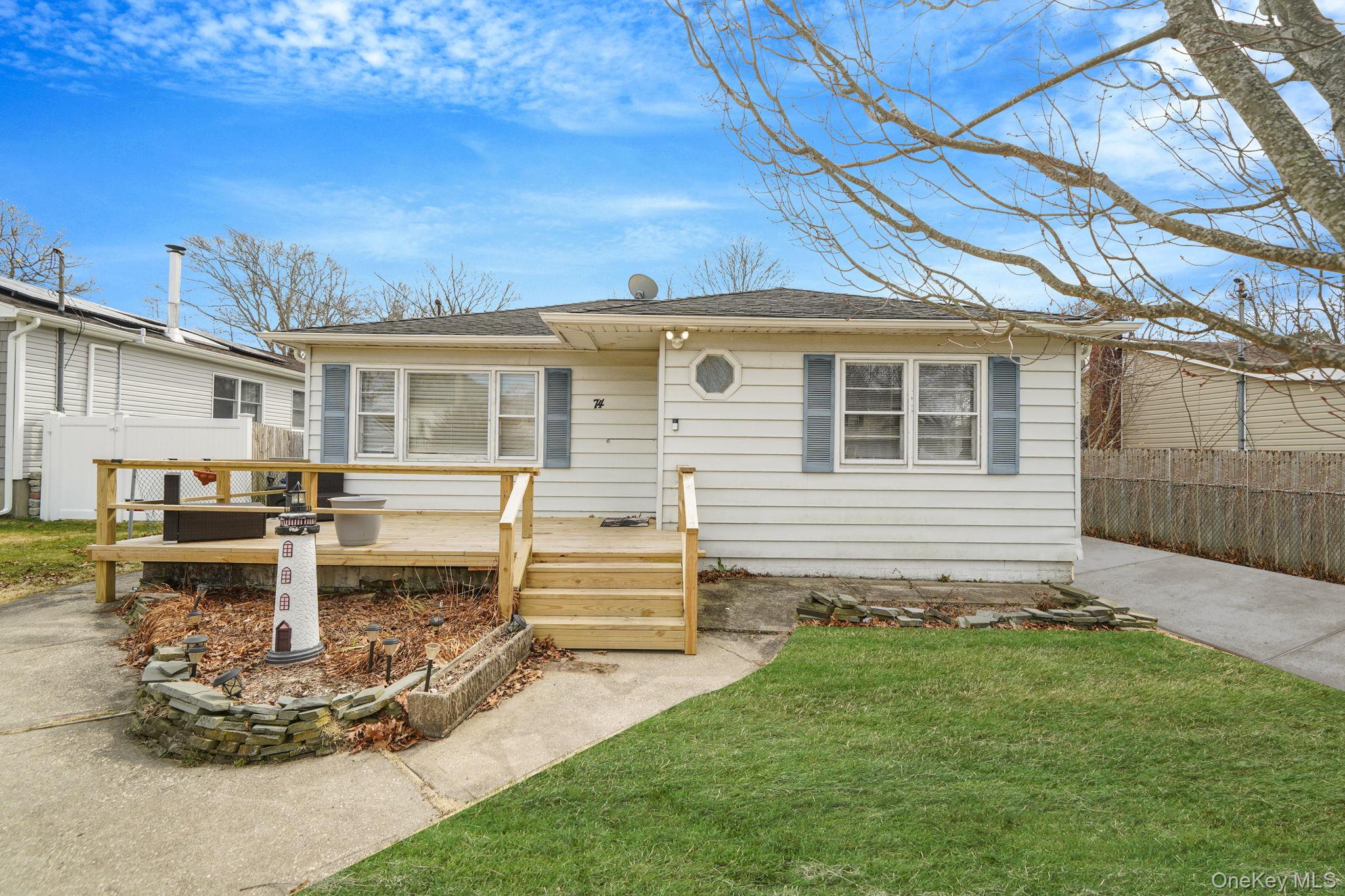 Built in 1980, this well-maintained 850 SF 2-bedroom ranch is ready to welcome its next owner. Featuring hardwood floors throughout, ductless AC units, and recessed lighting, this home offers a simple, easygoing lifestyle. A full, unfinished basement provides additional storage. Step outside to enjoy your new inviting front porch or your fully fenced backyard, perfect for the ultimate relaxation. LOW taxes. Easy access to William Floyd Parkway and close to Smith point Beach. Breezy livin'!