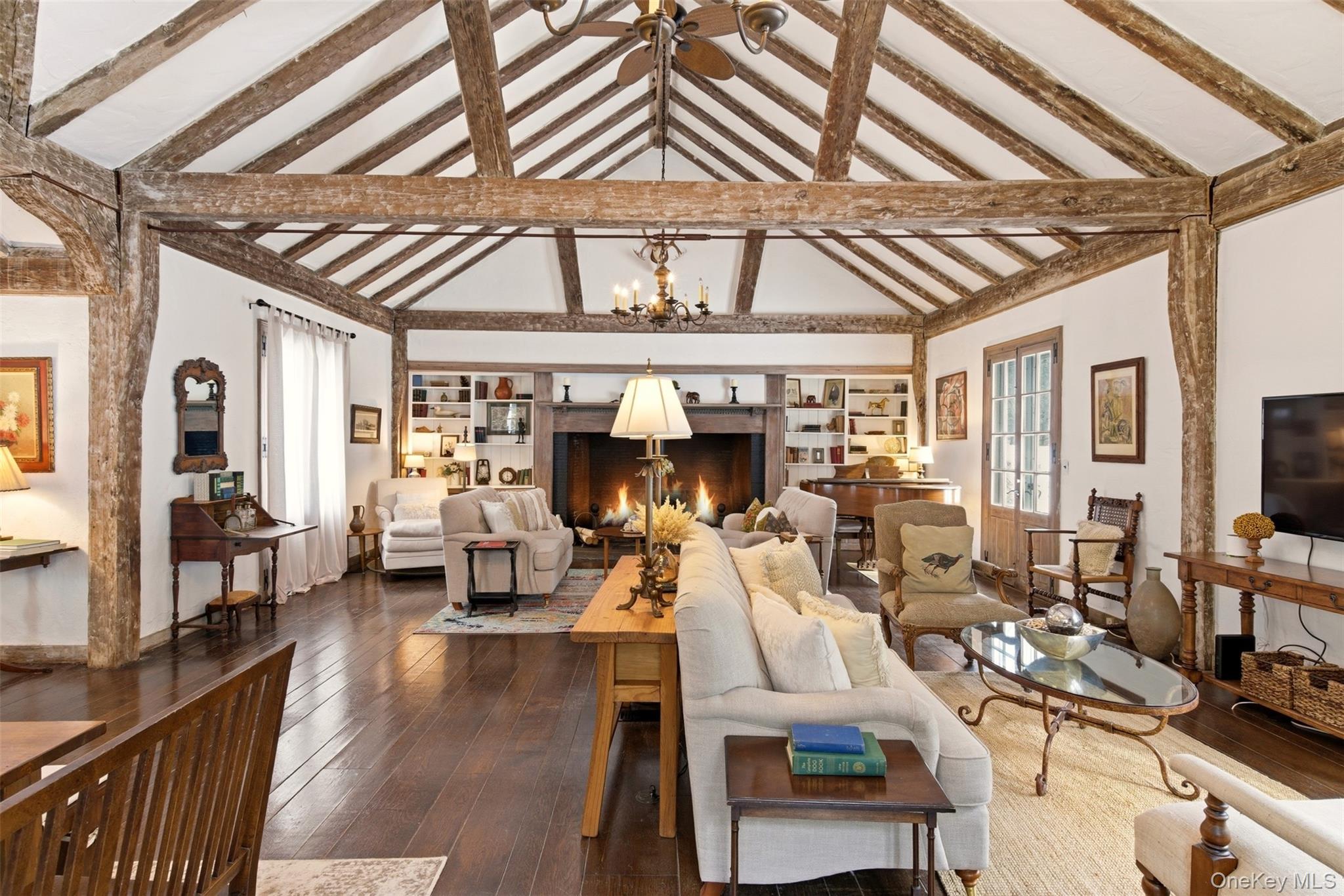 Welcome to Barn Owl, a timeless summer retreat set on beautifully landscaped grounds with peaceful garden views on the North Shore of Long Island. This inviting three-bedroom, three-bath cottage offers a rare blend of tranquility, character, and understated elegance for the summer season. Inside, a dramatic great room with soaring ceilings and exposed rustic beams creates a warm and striking gathering space filled with natural light. Beautiful wood floors and thoughtfully preserved architectural details lend the home its distinctive charm, blending historic character with relaxed sophistication. The country-style kitchen, anchored by a butcher block island, flows effortlessly into an intimate dining area perfect for casual summer meals and easy entertaining. Each bedroom offers a peaceful retreat, filled with light and surrounded by the quiet beauty of the landscape beyond. Outdoors, a picturesque bluestone courtyard invites slow mornings, alfresco dinners, and evening cocktails beneath the trees. The surrounding grounds create a serene and private atmosphere, while nearby beaches, boating along the Long Island Sound, and the region’s renowned golf courses offer endless opportunities to enjoy the North Shore lifestyle. Private, enchanting, and full of character, Barn Owl captures the feeling of a secluded summer escape in one of Long Island’s most beautiful settings.