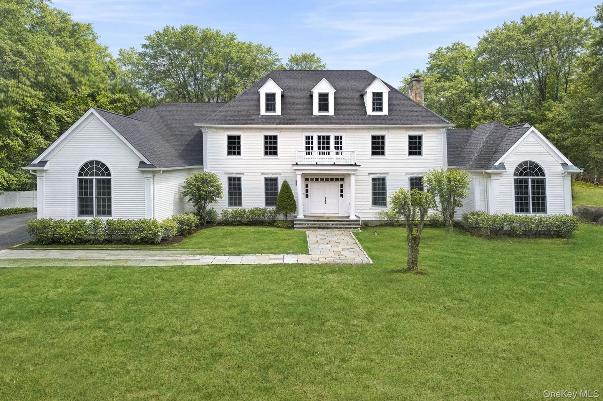 Elegant and timeless, this five-bedroom Georgian Colonial is set on a tranquil cul-de-sac, crowning a gentle rise amid sweeping meadows and striking rock outcroppings. Impeccably maintained, a two-story entry introduces interiors of classic elegance and finely crafted moldings, where gracious formal living and dining rooms unfold with ease. The magnificent music room showcases a cathedral ceiling and is flooded with natural light through oversized twelve-over-twelve windows. A sunken family room, anchored by a stately fireplace, opens through French doors to an inviting stone terrace - perfectly designed for both intimate moments and grand entertaining. A private first-floor bedroom suite with its own entrance offers exceptional flexibility for guests or extended stays. Dual staircases ascend to the upper level, where three well-appointed bedrooms accompany a serene primary suite featuring two walk-in closets, a fireplace, and a bath. An expansive bonus room offers endless possibilities for recreation, media, a home office, or additional accommodations. A spacious full basement with a walkout provides additional opportunities for recreation and versatile use. Outdoors, the grounds are graced with natural rock outcroppings and a generous level field, ideal for picnics or sports pursuits. Altogether, the property embodies a harmony of elegance, privacy, and refined living.
