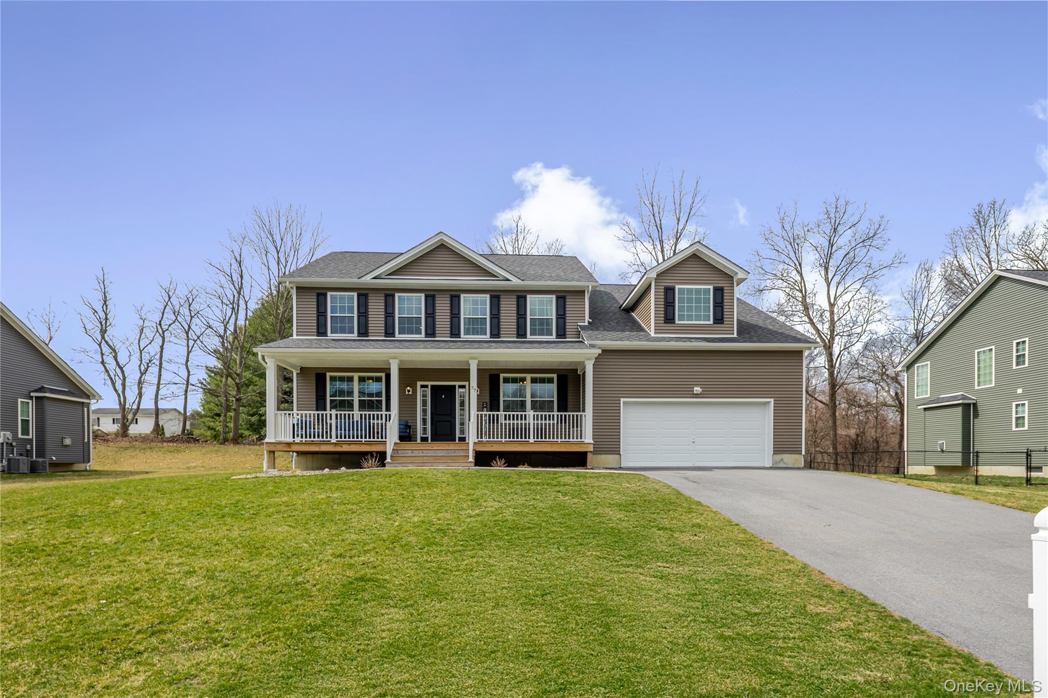 The highly sought-after Princeton model in the desirable Stratford Farms community offers timeless design and modern comfort, and at just three years young, provides all the benefits of new construction without the wait. A welcoming rocking chair front porch sets the tone as you enter this beautifully crafted home. Inside, you’ll find a versatile living room or home office with French doors, along with a formal dining room enhanced by elegant crown molding and classic picture moldings, while hardwood floors flow throughout most of the home. The huge family room with two seating areas features a cozy gas fireplace and an abundance of natural light, creating the perfect gathering space. The kitchen is a true centerpiece, showcasing beautiful cabinetry, quartz countertops, a center island, stainless steel appliances, and an oversized walk-in pantry. The adjoining breakfast area opens through sliding doors to a private rear deck overlooking mature trees—ideal for morning coffee or entertaining. Upstairs, the primary suite impresses with a cathedral ceiling, a large walk-in closet, and a luxurious ensuite bath complete with a soaking tub, glass-enclosed shower, and double-sink vanity. Three additional generously sized bedrooms, a main hall bath with double vanity, a convenient laundry room, and extra storage complete the second level. A full unfinished basement with 9-foot ceilings and an egress window provides endless possibilities for future expansion. Ideally located near the vibrant Eastdale Village Town Center, this home offers easy access to an array of shopping and dining options, along with close proximity to Vassar College, Marist College, and the Culinary Institute of America. Commuters will appreciate the convenience of the nearby Taconic State Parkway and Poughkeepsie Metro-North station, making this exceptional property a perfect blend of lifestyle and accessibility.