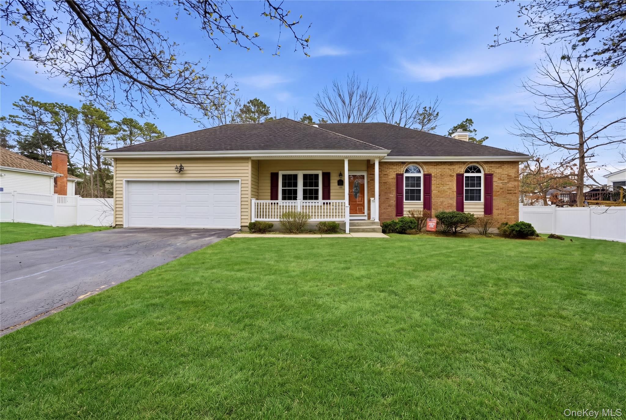 Welcome to Pine Woods at Coram—where everyday living feels effortlessly elevated. This expanded ranch is far more than meets the eye, offering the ease of true one-level living wrapped in a thoughtfully designed, open-concept layout. From the moment you step inside, a formal living room welcomes you and flows seamlessly into a relaxed dining space—perfect for both intimate dinners and lively gatherings. At the heart of the home, a center island kitchen opens to a sunlit den with soaring 11-foot ceilings, creating a space that feels both grand and inviting. The full basement with high ceilings and an egress window offers endless possibilities—whether you envision a home gym, media retreat, or extended living space—while still providing abundant storage. Outside, enjoy a fully fenced yard and the convenience of a two-car garage. This is easy, future-forward living—just minutes from shopping, major highways, and town beaches known for some of Long Island’s most breathtaking sunsets.