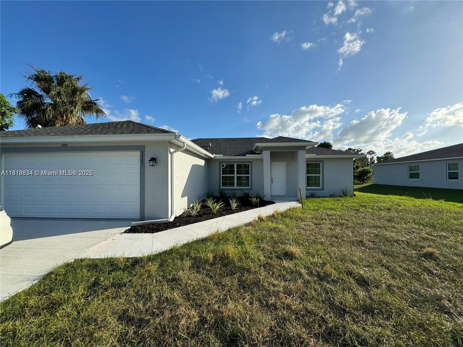This beautiful new construction home, built in 2023, offers 4 spacious bedrooms and 2 modern bathrooms within 1,614 sq ft of comfortable living space. Situated on a generous 0.25-acre lot in the desirable Lehigh Acres community, this residence features paved roads and convenient access to local amenities. Perfect for families or investors seeking a move-in ready property with potential for customization. Don?t miss the opportunity to own a modern home in a growing neighborhood with easy access to Southwest Florida attractions.