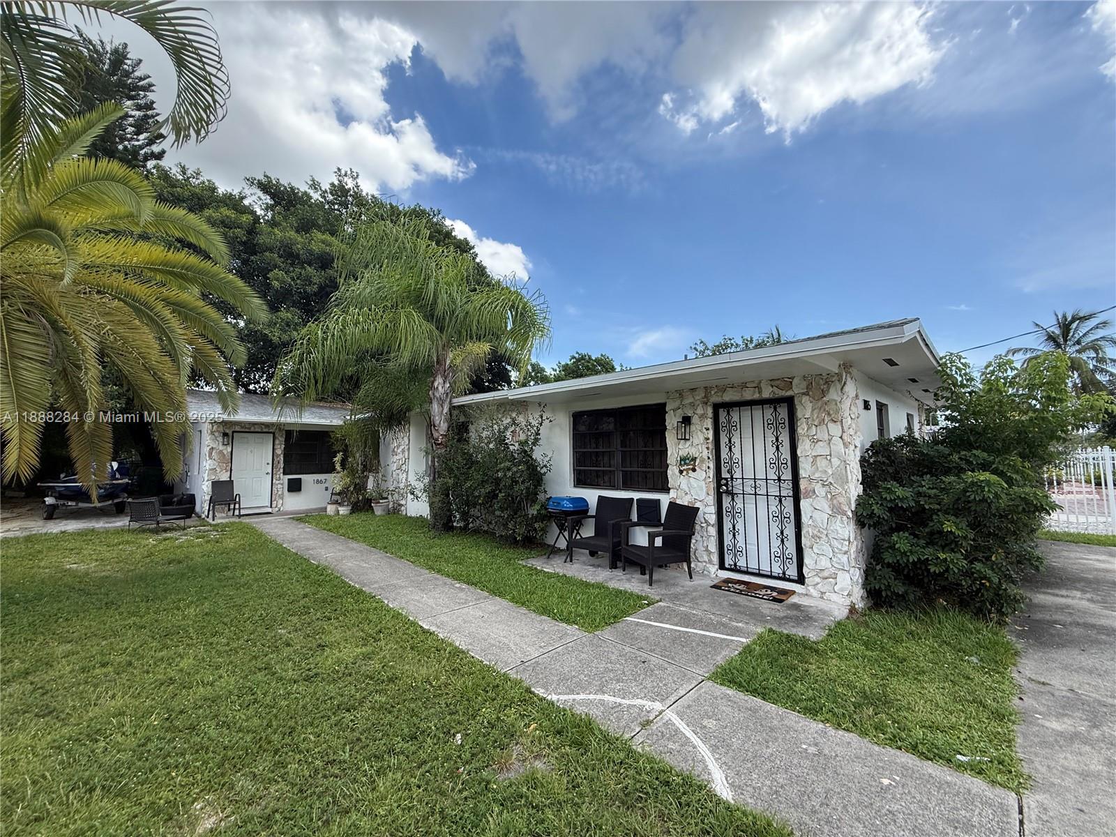 Beautiful newly renovated multi family unit! Gross rent of $5,050. One unit of 3/2 and one of 2/1. Nicely renovated units with new custom wood cabinetry Kitchens and full quartz backsplash. Stainless steel appliances, dining room, large family room, master bedroom, new bathrooms and laundry hook up. Brand new 24x48 porcelain floors. Freshly painted, three year old roof with new central A/Cs in rear unit. Close to I-95, 112 and Miami International Airport. Long term tenants. Yearly leases. Quiet street. Must see!