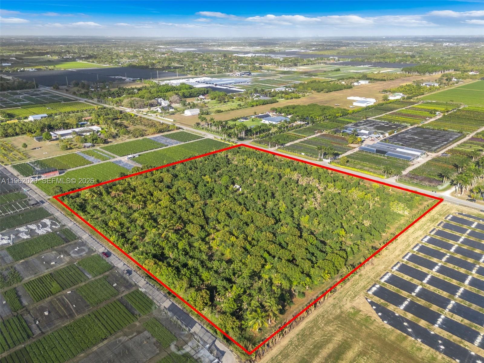 Prime 10-acre Redland agricultural opportunity (Folios: 30-6815-000-0143 & 30-6815-000-0144). Both parcels must be sold together. Located approx. 1 mile west of Krome Ave with excellent paved road access near major thoroughfares. Situated in one of Redland’s most desirable agricultural pockets known for deep, nutrient-rich soil, open skies and a thriving farming culture. Productive avocado grove featuring various avocado varieties along with banana and mango trees. Property includes sprinkler irrigation, two wells and a Detroit diesel pump. Zoned AU Agricultural with potential for one estate home per 5 acres (possible two estate homes). Ideal for nursery operations, tropical fruit production, agribusiness or a private agricultural estate.