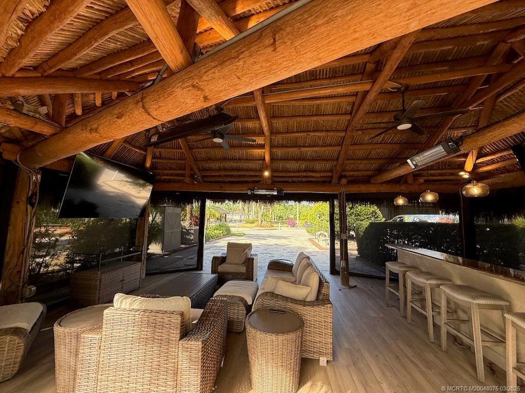 Discov?r ? true gem that r?def?nes lu?ury and outdoor living! Th?s ?tunning lot features a large tiki hut with a fully equipped kitchen and the perfect space for relaxation and entertaining. Loaded with amenities, this property offers two water features, including a striking bronze dolphin fountain, separate parking for convenience, and an organic mosquito control system for comfort. The gourmet kitchen boasts a built-in wine chiller, cooktop, paper towel holder, and dishwasher. For entertaining, there’s a separate tiki bar tucked at the rear of the lot overlooking the 14th hole. The bar is fully equipped with built-in grill, 2 beverage refrigerators, TV and built-in audio system, lux furnishings, sound systems, and storage units are included, along with remote-controlled screens for effortless indoor-outdoor living. The lot’s gorgeous landscaping and lighting enhance its beauty day and night, with lighted fountains in both the front and rear and picturesque views of the golf course.