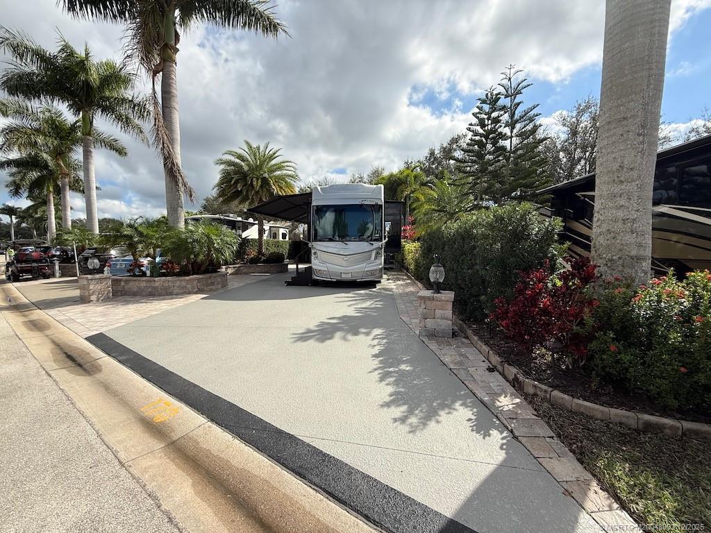 Immaculat? ?nd move in r?ad?! Thi? spacious 2,868 sq. ft. l?t off?rs the perfect blend of comfort and style, making it feel just like home. The large tiki hut is beautifully designed with a decorative fan pole and provides an ideal space for relaxation and entertaining. Inside the tiki, you'll find a well-appointed galley kitchen with granite countertops and bar, a built-in electric fireplace, and a wall-mounted flat-screen TV—perfect for cozy evenings. A custom storage unit with decorative shelving adds both functionality and charm. The space is tastefully furnished with a dining table and chairs, as well as a comfortable sofa and seating area for ultimate relaxation. The extra-wide lot offers plenty of room for entertaining in a private, tropical setting. Priced to sell, this exceptional property is a definite must see!