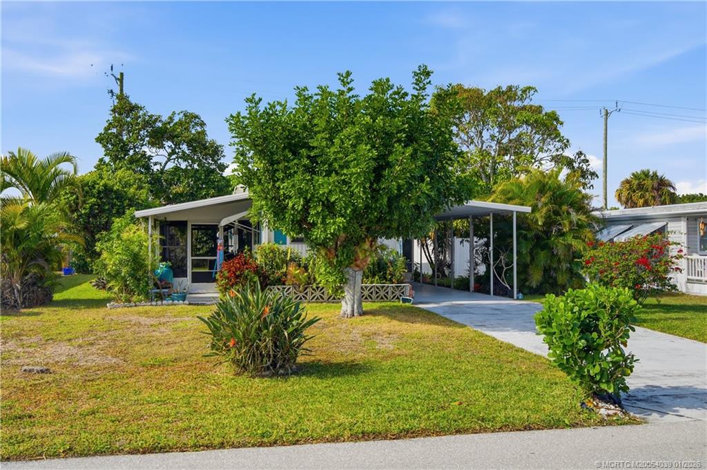 This super cozy 2-bedroom 2-bath home feels spacious and has a Family room with a high ceiling that opens to an updated eat in kitchen! Other updates to the flooring and a bathroom look very nice and the bathrooms have walk in showers. Additional living areas are convenient, private, and useful. There is an area for your computer, mail, keys etc.… an additional air-conditioned living space with panoramic windows and an additional side screened in porch. Plenty of storage both in the laundry room and shed and a nice covered carport to keep your car out of the Sunshine. Convenient location near beaches, boat ramps parks, shops, supermarket, and restaurants. Voluntary separate membership gives you access to a community pool, clubhouse, and activities. LAND IS OWNED, PETS ENJOYED AND NO MANDATORY HOA. Sq ft approx.