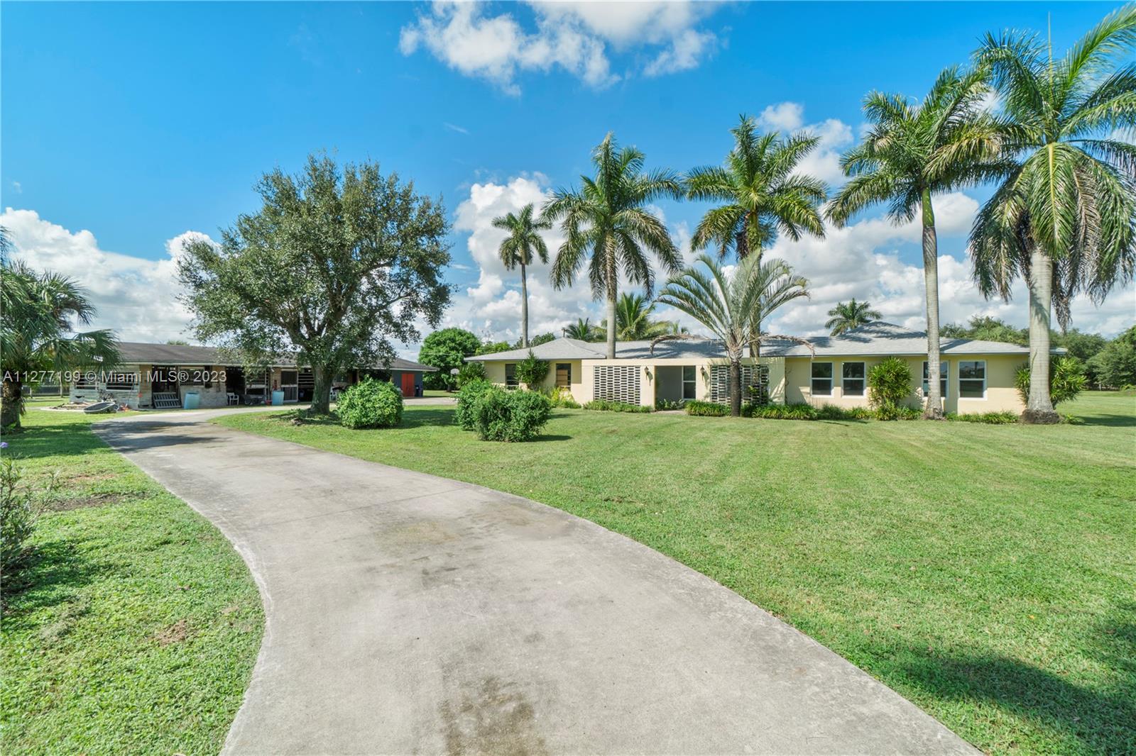 MUST SEE THIS AMAZING PEACEFUL property located on 4. 73 acers in Homestead to appreciate all it has to offer. Quaint farmhouse with spectacular entrance, new roof, impact windows, large kitchen with window looking out onto the property. Many water wells located throughout the property. Horse stables that can bring income or can be used to store vintage cars. Income producing exotic trees such as Jack Fruit tree, Curry tree, Old Spice tree, Mamey tree and more. Additionally, a separate guest/in law quarters that can be used for income. Must see in person to appreciate all the beauty of this property. Make this your home! Great place to raise a family, create an event venue or a new development. BY APPOINTMENT ONLY.