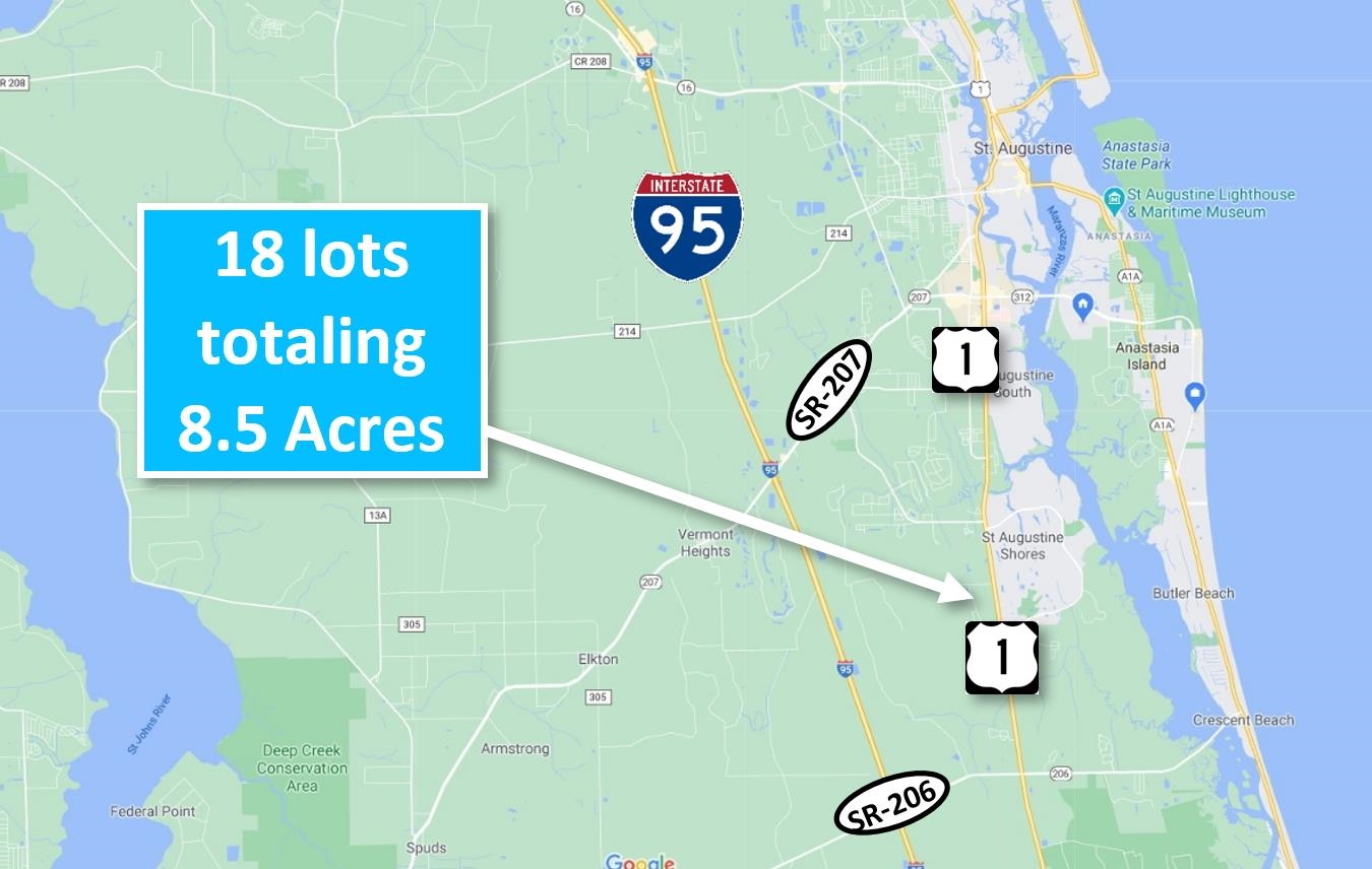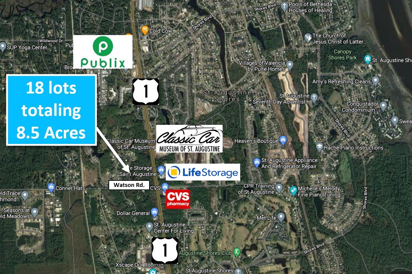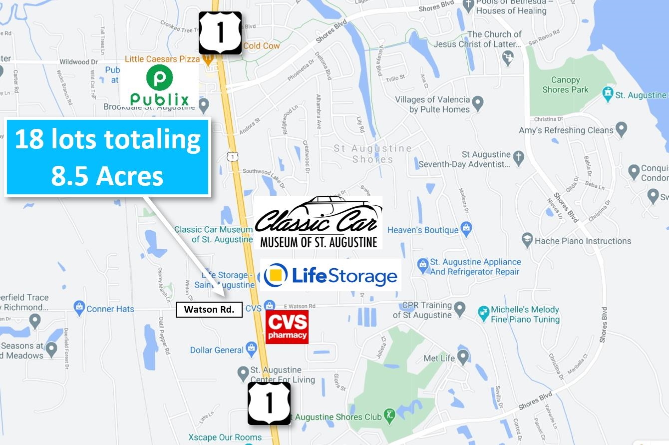 Watson road just west of U. S. 1. 8. 5 acres, 18 platted lots. Ideal for a developer, home builder or investor. Offers being accepted.