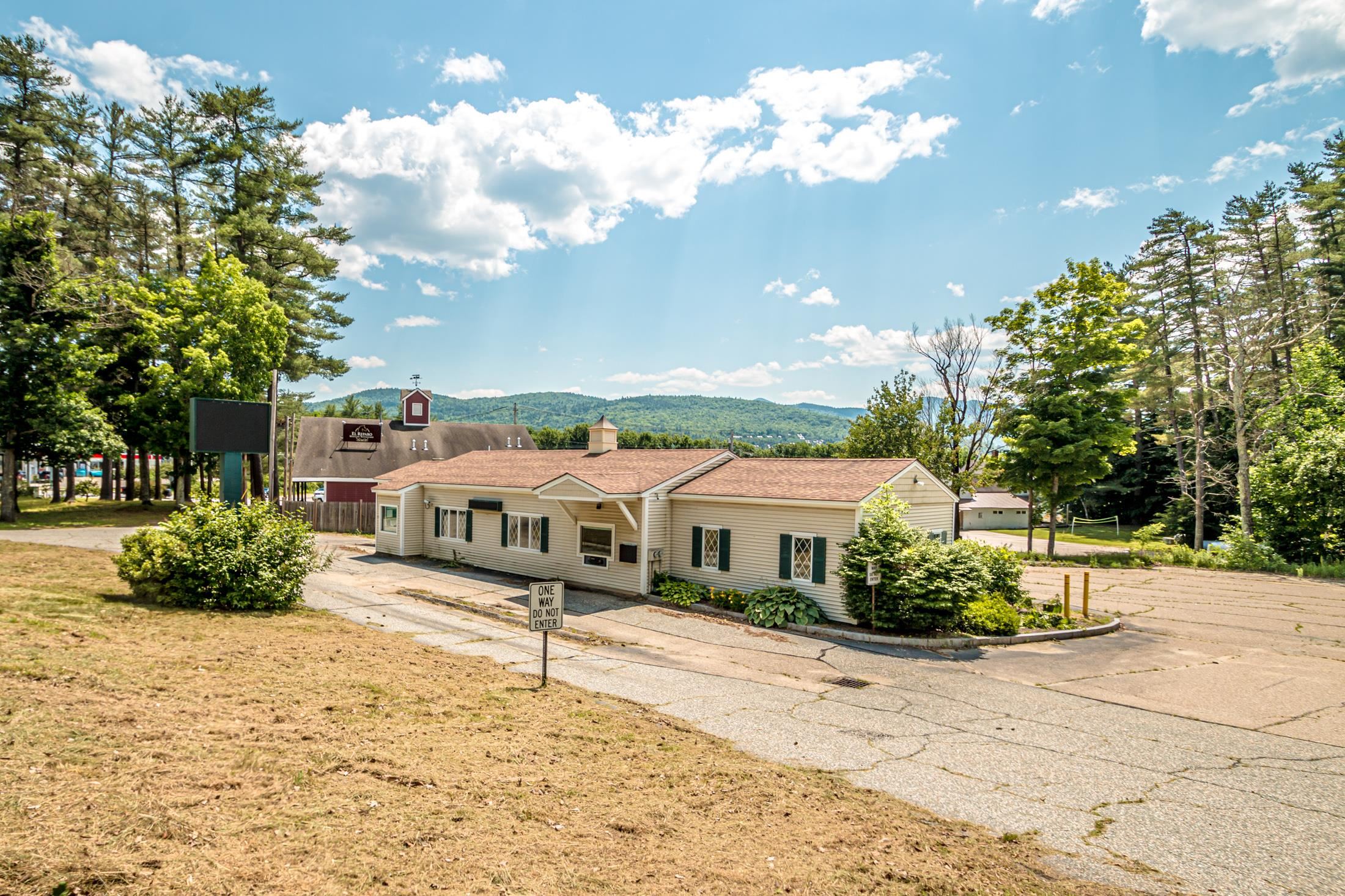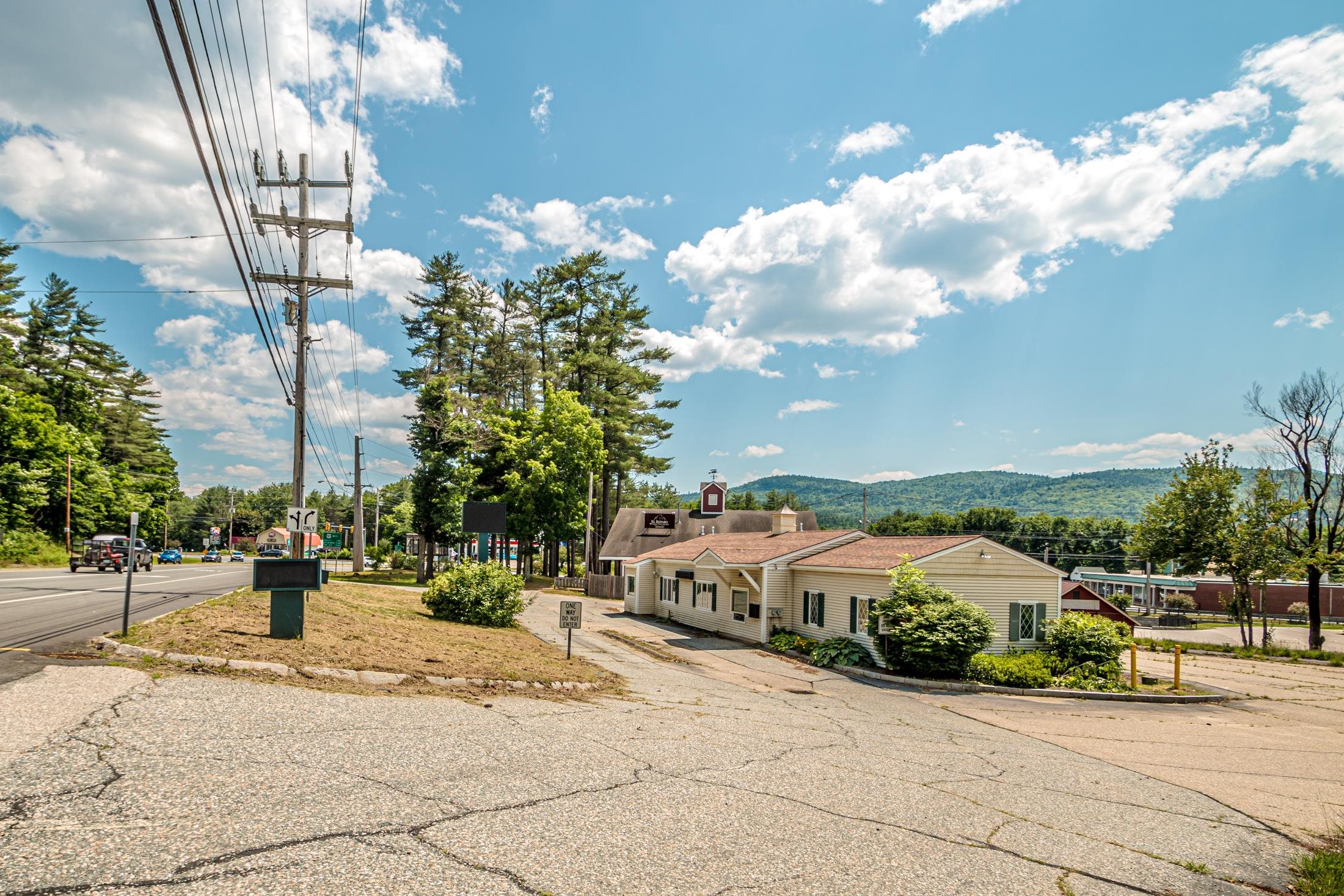 Well-located and highly visible 2353 sq. ft former bank building situated next to the active junction of Route 302 and NH Route 16. The property includes a drive-thru window, a front ATM entrance, prominent signage, entrances in the front and back and an open floor plan on the first level that includes office space, a bathroom and bank vault with ample paved on-site parking on a level 1. 1 acre lot. The partially finished basement has a kitchenette with bathroom and plenty of storage space. The location is diagonally across from Dairy Queen and Irving Gas Station, next to a popular Mexican restaurant El Reparo and . 4 miles from Story Land amusement park and Living Shores Aquarium. Skiers heading to Attitash, Black Mountain and Wildcat pass this location along with drivers going to Pinkham Notch and Crawford Notch. A candidate for retail, office space, a dairy bar, coffee shop, insurance office, takeout restaurant and more.