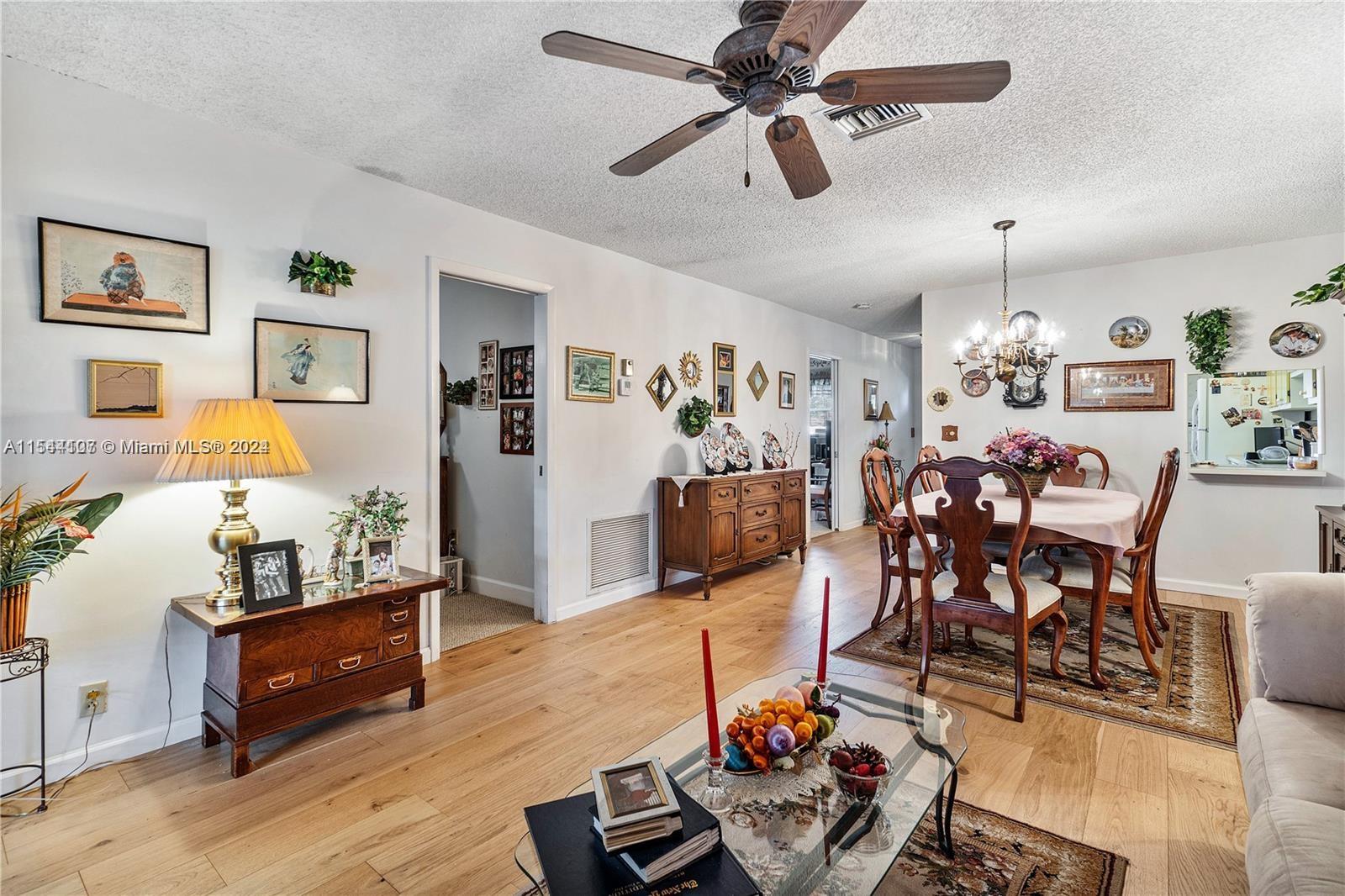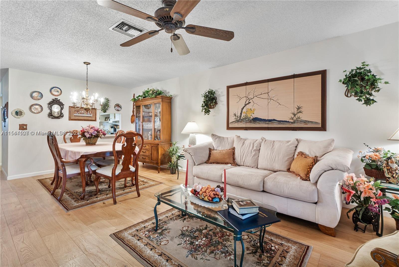 2 baths with laminated wood floors. The Community features pool, clubhouse, tennis court and shuffleboard.