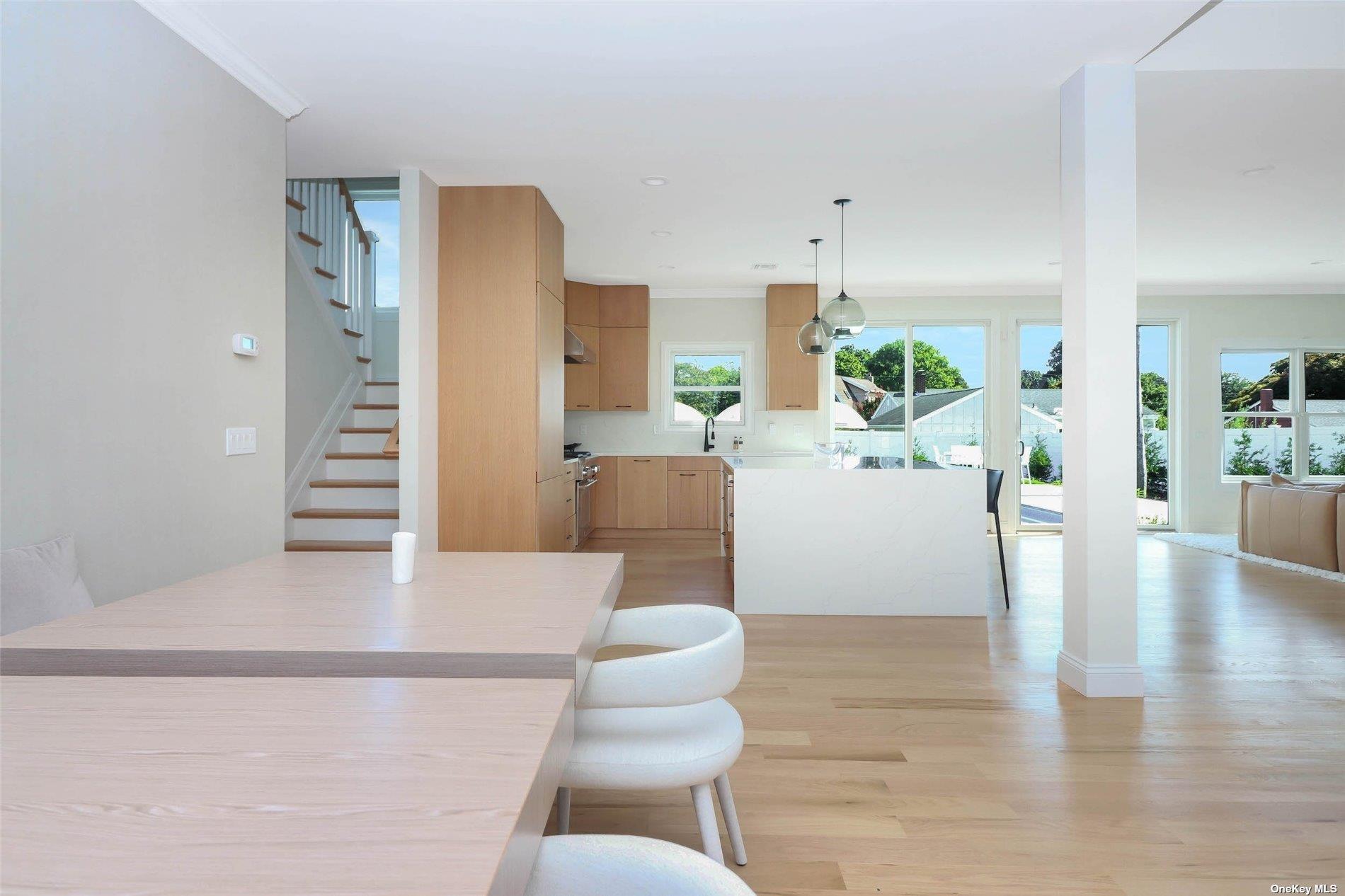 2026 Rates: May $26, 000; June $29, 000; July $36, 000; September $27, 000; October $24, 000. Experience North Fork summer living in this newly constructed gem! Nestled in the sought-after Stirling Eastern Shores community, this impeccably designed modern farmhouse offers exclusive access to a private Long Island Sound beach, just a five minute walk from the property. Step inside to discover a light-filled and meticulously styled interior adorned with contemporary finishes and furnishings. The heart of the home is the chef's kitchen seamlessly integrated into the Great Room and anchored by a cozy gas fireplace. On the first floor, you'll find a convenient half bath, a junior en-suite bedroom, a spacious mudroom, and a sizeable 2-car garage. Ascend to the second level to encounter two additional guest bedrooms sharing a full bathroom, along with a stunning primary en-suite bedroom. The primary bath boasts a luxurious double vanity, a walk-in shower, a soaking tub, and an expansive walk-in closet for added convenience and indulgence. Outside, the property showcases a captivating landscape featuring a sprawling stone patio enveloping a 20x40 heated salt-water pool, complemented by an outdoor shower - an ideal setting for hosting gatherings and enjoying the summer sun.