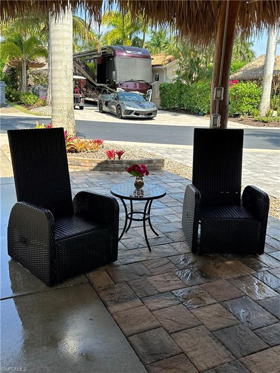 Lot 125 - Welcome to your own slice of paradise! This lot has an oversized Tiki and a huge grassy area in the rear of the property that you can enjoy as lawn, a place for your dog to play fetch and roll around or let your imagination go wild and landscape with beautiful flowers and shrubs. This property also affords space for several separate conversation areas, you can lounge on the grass or just off of it on your pavers, the oversized tiki can accommodate a huge dining table to enjoy a meal and still have room for chairs and end tables under the tiki to just socialize. The tiki has screens on three sides that you can have rolled up for the amazing breezes, or pull down for privacy. The tiki is well positioned so that you can easily access your motorcoach to bring out and replenish food and drink quickly. Come see this amazing property with oversized, side positioned tiki and make it your own. Naples Motorcoach Resort is a Class A only resort and boasts a beautiful infinity pool, hot spa, exercise room, men and ladies' saunas and a kitchen that owners can use. A clubhouse for events whether sponsored by the resort or you can reserve for your own gathering. Two satellite pools each with a hot spa their own rest rooms and a laundry room. We can't forget your furry best friend; the resort also has a dog park!