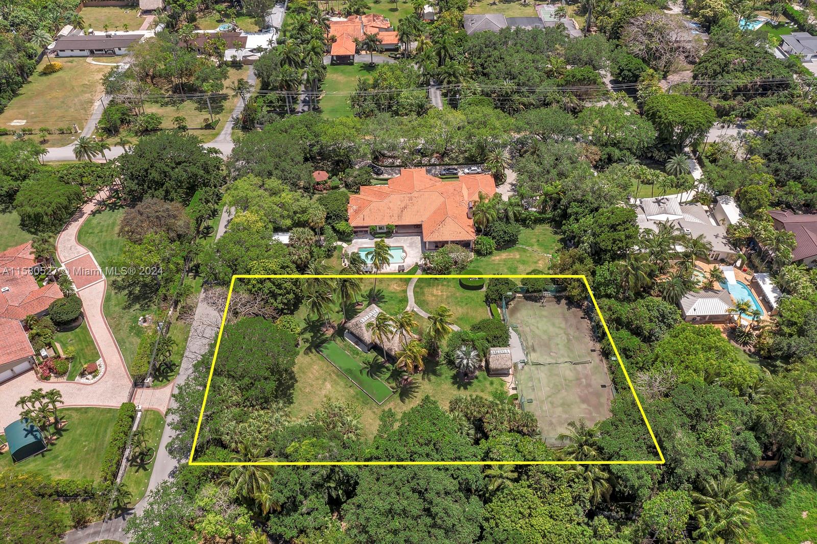 Pending parcel separation. The owner has begun the process to divide the folio into 2. The listed portion of land for sale is the northern vacant 1/2 of the homesite with the tennis court. Separation pending approvals. Lot size is approx. 37, 240 SF and is to be confirmed once folio has been divided. Lines on areal aerials approximate.