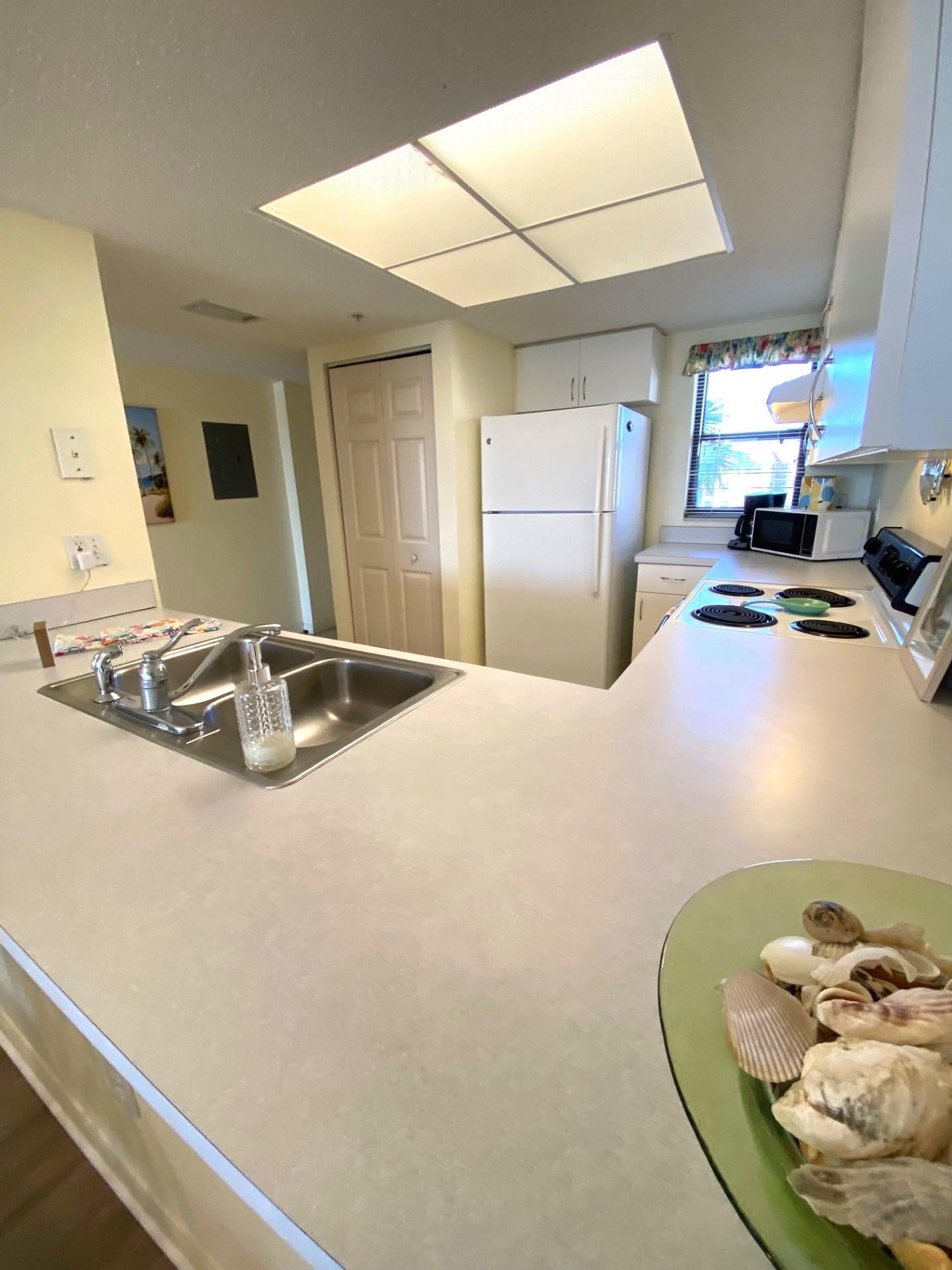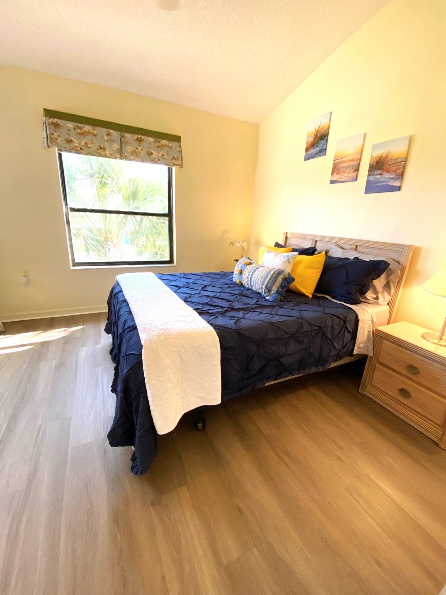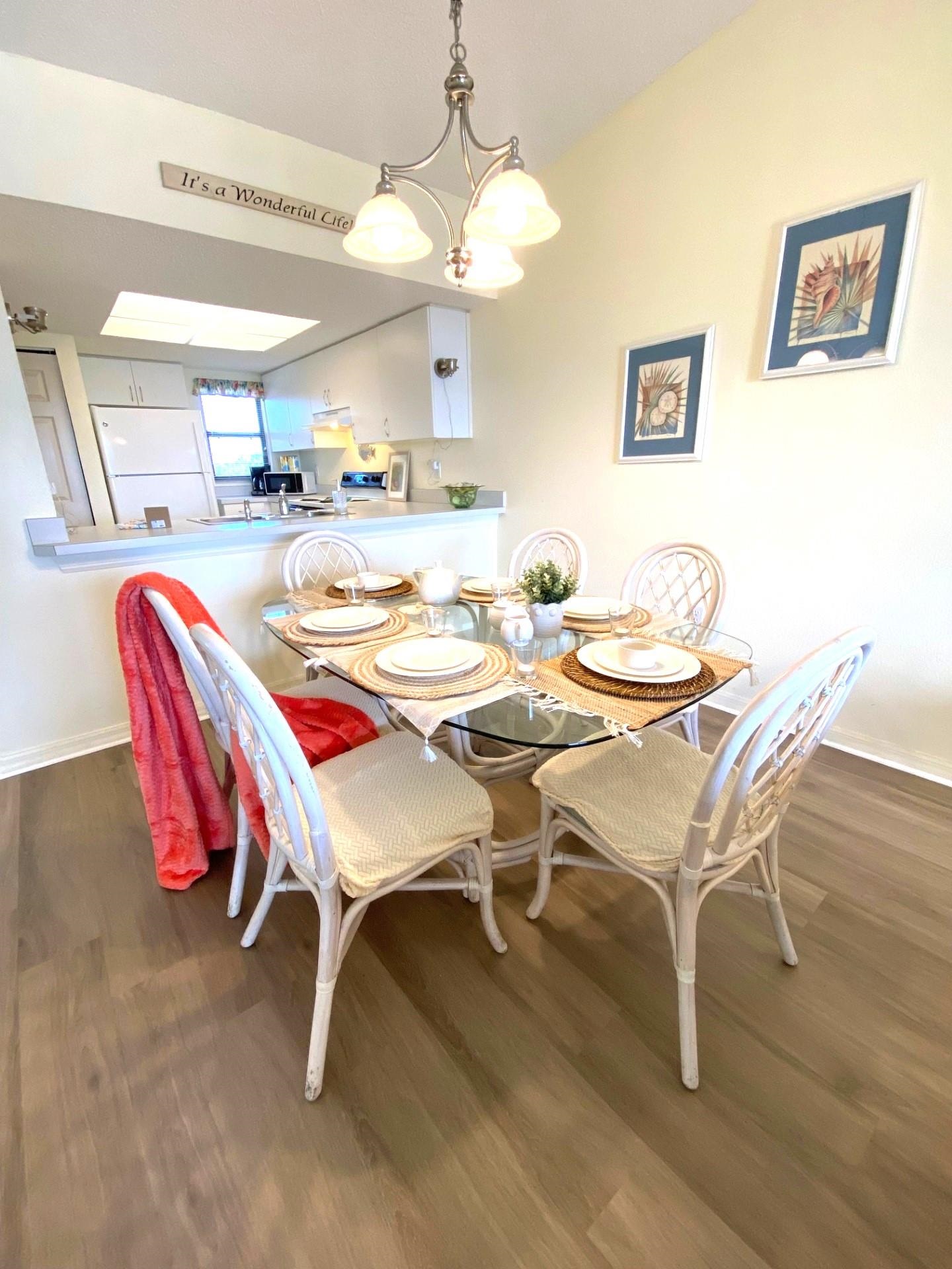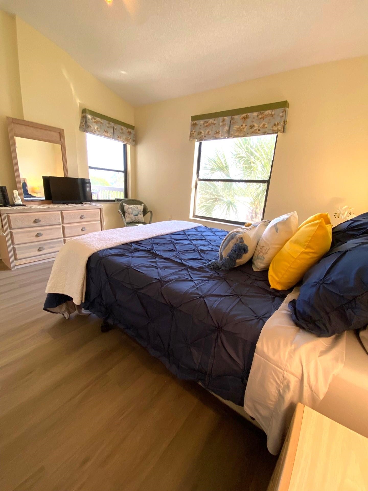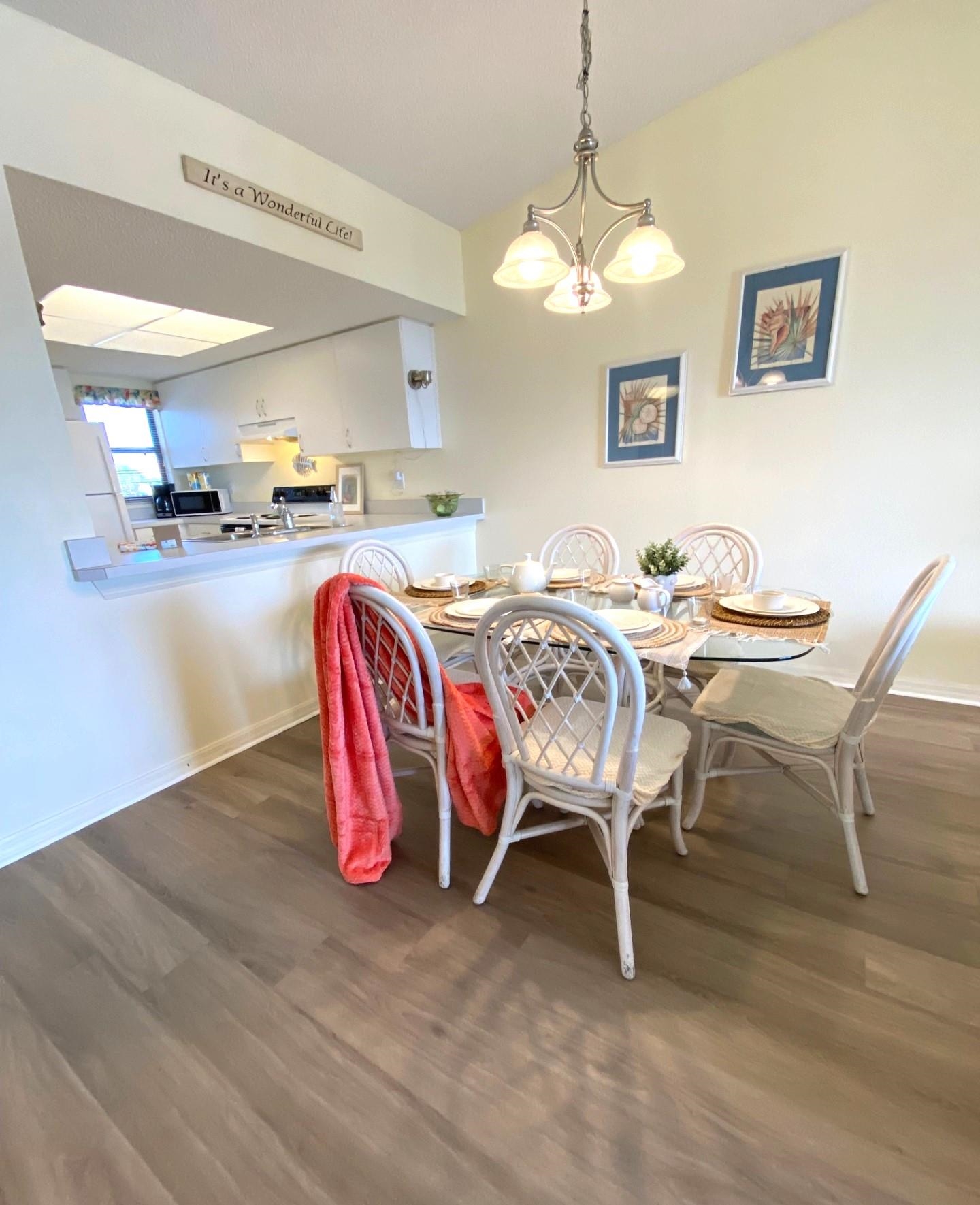 2BR/2BA condo in Elevator Building is the largest and most spacious floor plan at the oceanfront community of Ocean Village Club. Third Floor unit feels like a tree house at the beach and this building is one of only 5 that offers an elevator, so no stairs required. This unit has new luxury vinyl plank flooring in all rooms but kitchen and baths. Rare to the market, this beauty also features the high vaulted ceilings that only some 3rd floor units offer. Ocean peeks from Master Bedroom and Lanai. Located across from the clubhouse, fitness center and heated pool. The oceanside pool and beach are just a short walk. Conveniently located near the community grills and outdoor dining pavilion. Ocean Village Club also offers tennis courts, gated entrances, car washing area and plenty of community activities. Located in the heart of St Augustine Beach at the corner of A1A and Dondanville Road. You can park your car and walk or bike to coffee shops, restaurants, entertainment, grocery stores, salons, farmers market and more. From sunrise to sunset there's plenty of fun. This is a pet-friendly complex allowing owners to have two pets with no weight or size restriction, but only excluding aggressive breeds per their master insurance policy. Monthly condo dues include cable, WI-Fi, water, sewer, master insurance, community maintenance and access to all amenities. Owners make a 13th payment of $450 towards Reserve Funds with the next payment due October 30, 2024. Buyer will assume all future payments. Measurements are rounded down per MLS constraints. Buyer to verify all pertinent information such as room sizes, condo association information, etc.
