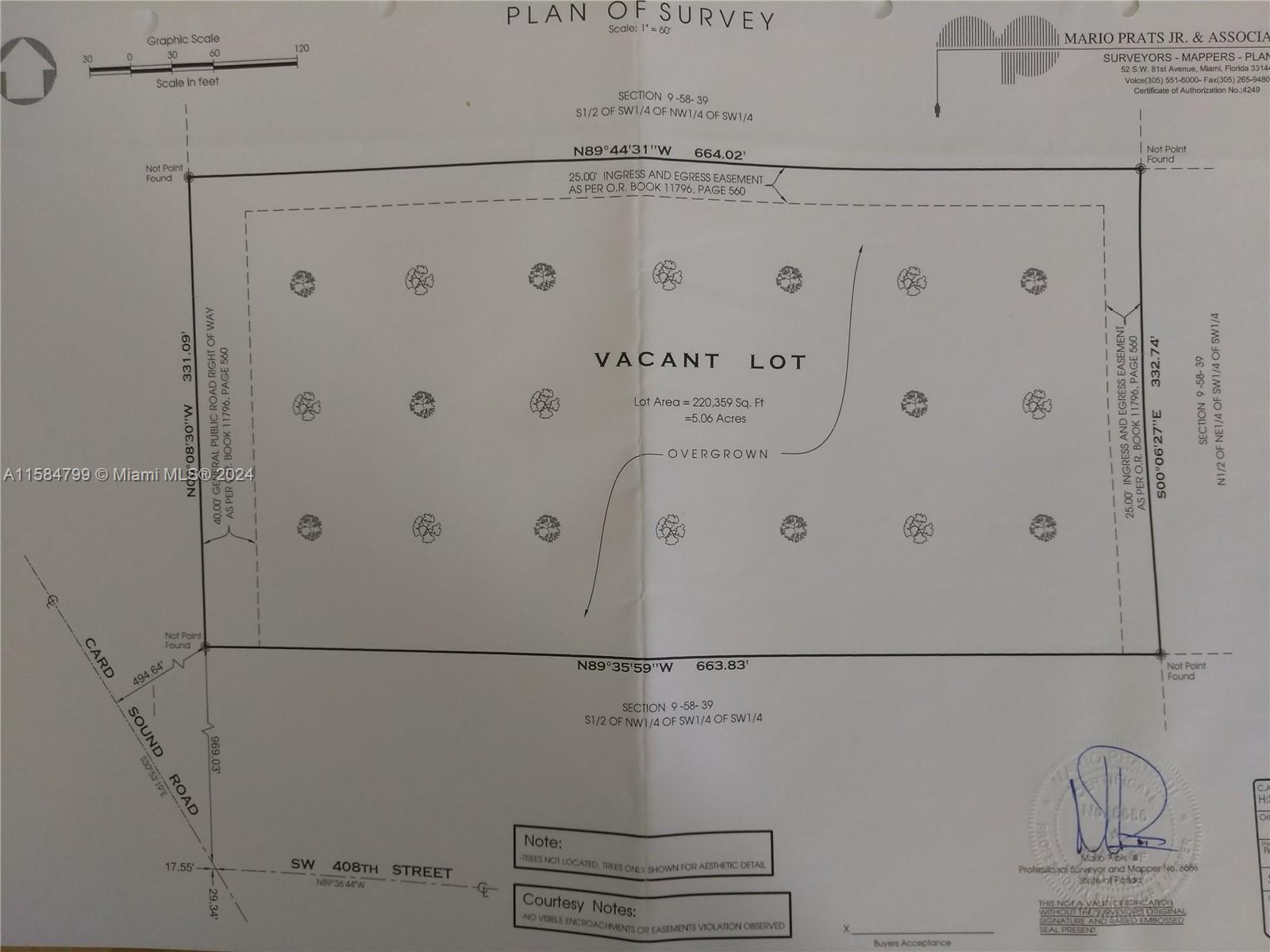 " MOTIVATED SELLER " COME BY THE FUTURE AT THE APROX. PRICE OF $ 7. 65 PER SQ. FT. ******** 5 ACRES LOT 333 x 664 WITH LEGAL ACCESS AS PER LEGAL. 40 FT. FRONTAGE FOR GENERAL PUBLIC ROAD RIGHT OF WAY AS PER PB 11796, PG 560 WITH REAR & RIGHT SIDE 25 FT INGRESS & EGREE EASTMENT. LOT IS LOCATED AT THE FUTURE CORNER OF 404 ST & SW 157 AVE. NEAR CARD SOUND ROAD AND ACROSS THE STREET FROM CEMEX CONCRETE. LOT IS LOCATED IN THE CITY OF HOMEASTED. CURRENT LAND USE IS (802)-VACANT, PROTECTED PRIVATELY-OWNED. *******HARD MONEY OWNER FINANCING WITH 40 PERCENT DOWNPAYMENT @ 9. 50 PERCENT INTEREST ONLY FOR up to 10 YEARS WITH 6 MONTH PRE-PAYMENT PENALTY******