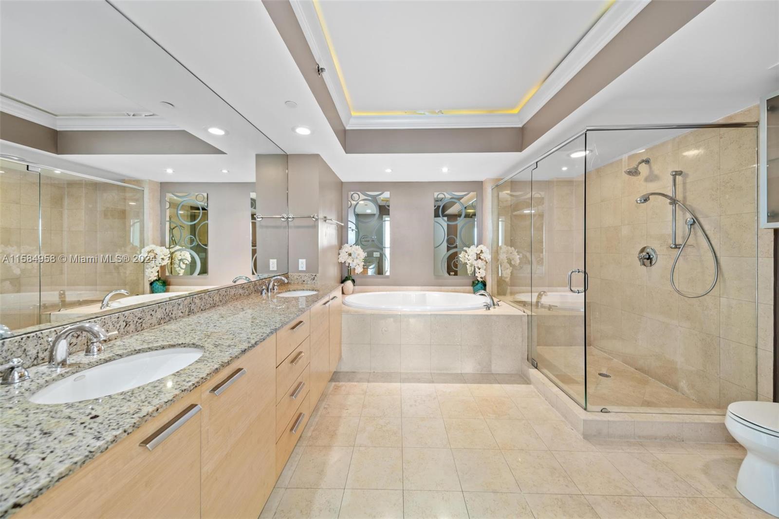 Truly Unique North-East corner unit with Breathtaking direct Ocean and Intracoastal views from this 17th floor. 2, 065 sq. ft. plus 565 sq. ft. wraparound balcony. 3 bed/3 baths. Marble floors throughout, European style kitchen with Gorgeous granite counter tops and kitchen-aid appliances. Jacuzzi & separate shower in master bath. This is a 5 star resort like amenities such as magnificent lobby entrance, full time concierge, security, 24-hour valet, multi-level covered parking, 5 heated pools, 50. 000 sq. ft. spa, and fitness center overlooking the ocean. One parking assigned +1 free valet. Easy to show. Rental policy is minimum 30 days, 12 times per year. "Available now. "