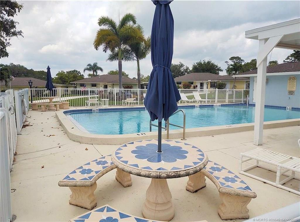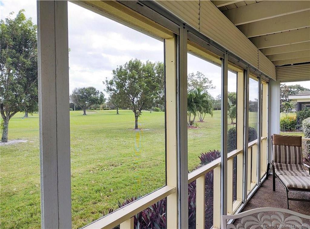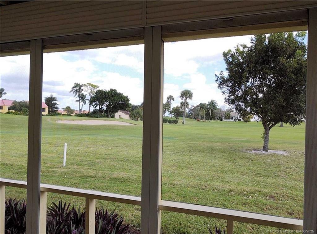 Awesome golf views of the 3rd fairway in this CBS, tastefully furnished, 2bed plus den/2bath/1car carport. Relax and enjoy this lovely, bright & sunny unit, open concept, w/an updated new kitchen, & a screen porch. All age friendly. Enjoy the breezes & lifestyle. Easy access to dining, shopping, downtown Stuart, parks, & medical facilities. This spacious home offers full size washer/dryer, dishwasher, microwave, disposal, multiple TV's, queen bed in master & spare bdrm, & your den can be used as a 3rd bdrm. In excellent condition. Basic cable/wifi, lawn care, water, sewer, trash, included in rent. Electric is included but capped at $100 a mo. , any overage deducted from security. Exit cleaning fee of $300. Tenant responsible for 12% sales/tourist tax on rental. Available 07/01/25 to 03/17/26. Community pool. Memberships available for social, golf, & tennis at Miles Grant Country Club. The Intracoastal Waterway is 1/4 mile away & directly across from Peck's Lake Preserve & boardwalk to beach access.
