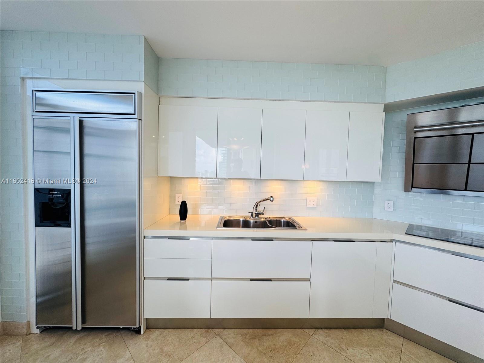This residence features a Mia Cucina kitchen, Venetian plaster walls, designer chandeliers, floor-to-ceiling windows, and electric shades