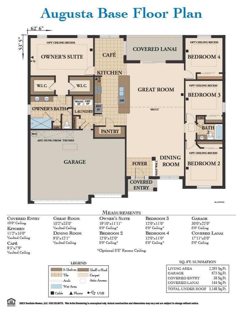 Have lots of stuff and need somewhere to put it all? Look no further than the Augusta. As one of the larger split plans, the Augusta boasts four bedrooms and a highly sought-after three-car garage. Offering plenty of space for everyone this home has an open kitchen with an island, upgraded cabinets with Granite countertops, large great room, breakfast nook and formal dining room. The upgraded flooring in the main areas and Owners suite is luxurious ceramic tile. This home features a covered lanai , upgraded landscape package and irrigation system.