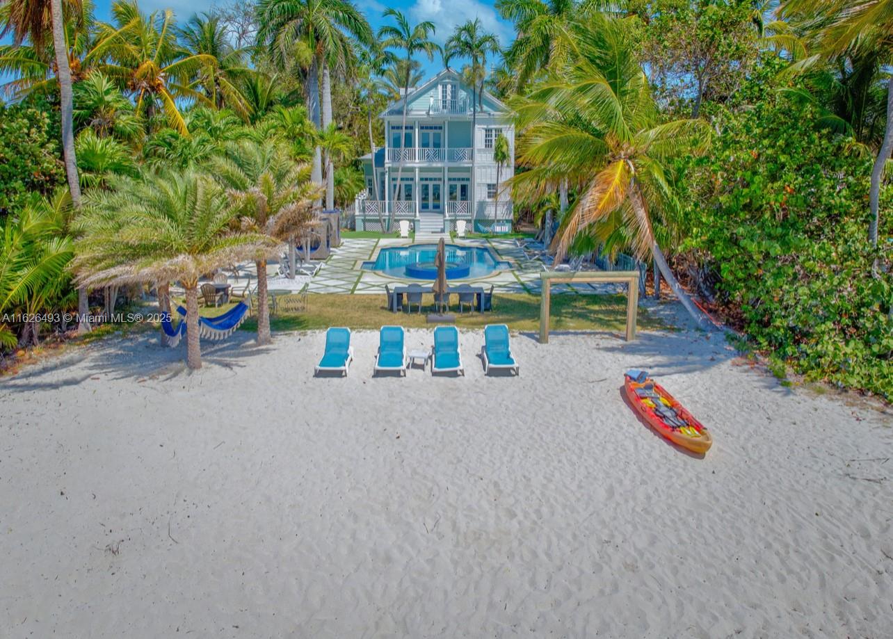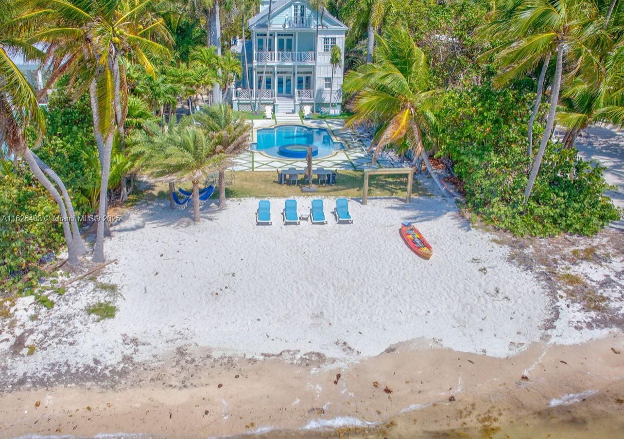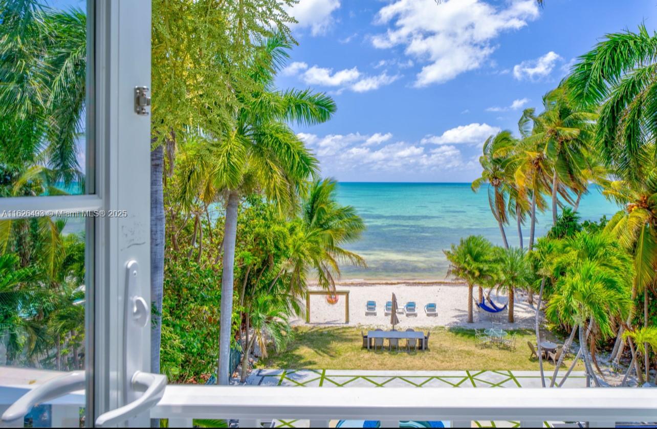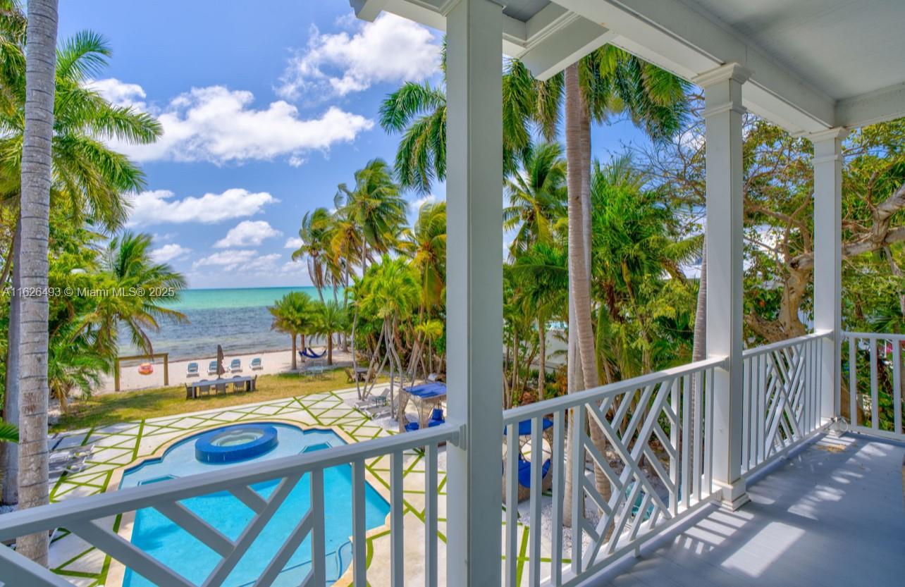 Enjoy endless ocean views and direct access to the white sandy beaches of Islamorada from this oceanfront retreat. Behind your own private gated entrance, this solid concrete block home offers four bedrooms, four full bathrooms, and a cozy loft. Inside, hardwood floors run throughout an open layout featuring a breakfast nook, dining bar, and spacious living area — ideal for entertaining. The chef's kitchen is equipped with stainless steel appliances, a gas stove, and modern finishes. The master suite includes a private balcony overlooking the updated saltwater pool and a jetted tub for ultimate relaxation. This one-of-a-kind property also allows weekly rentals, making it a strong investment in one of the Keys' most sought-after locations.