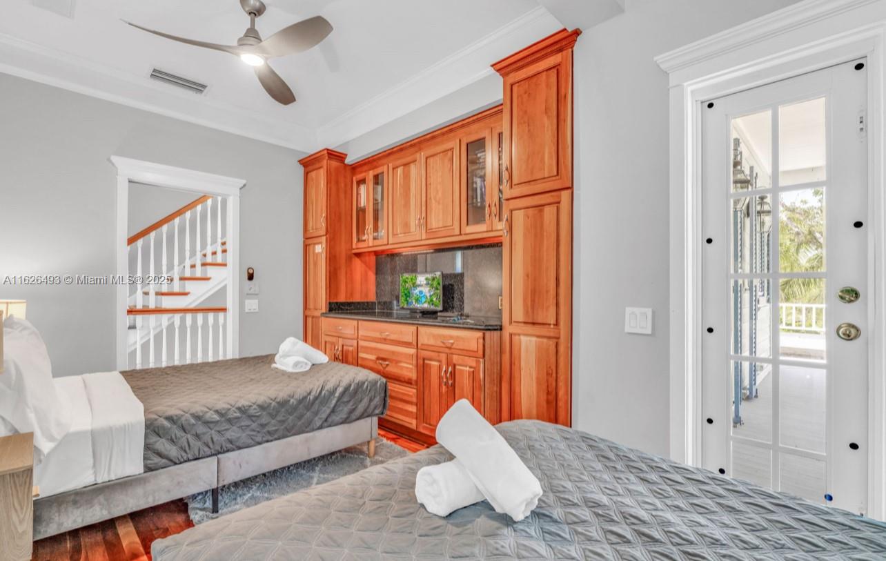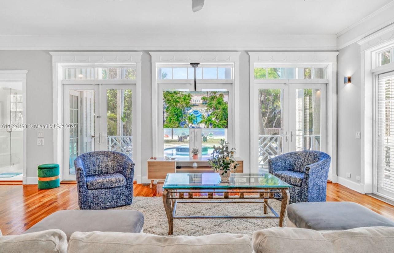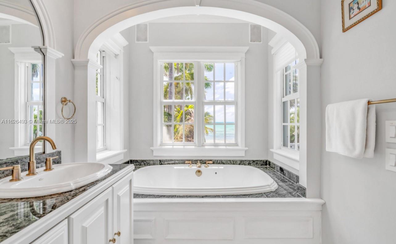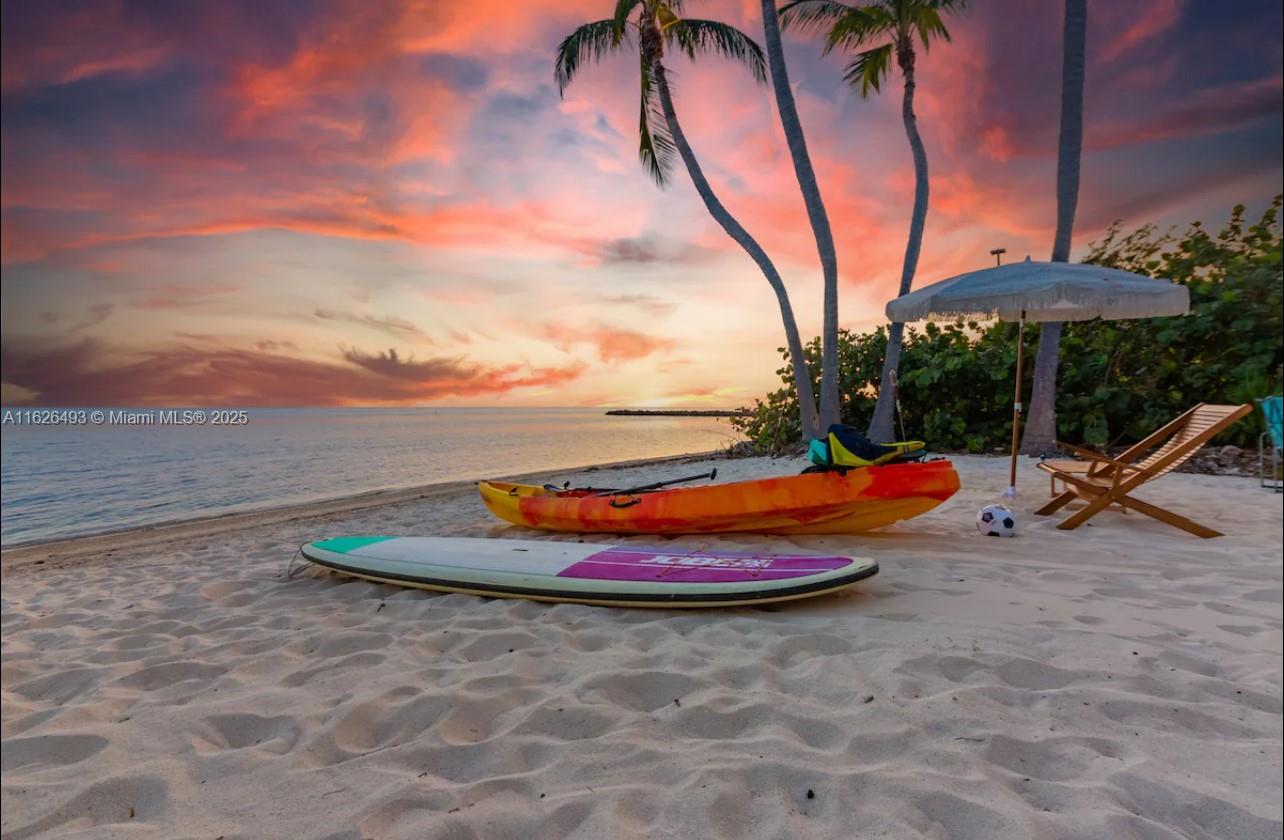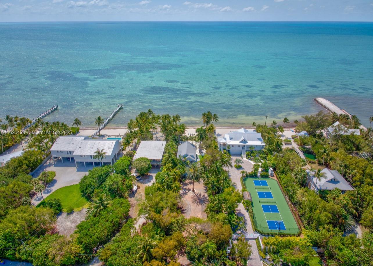 Enjoy endless ocean views and direct access to the white sandy beaches of Islamorada from this oceanfront retreat. Behind your own private gated entrance, this solid concrete block home offers four bedrooms, four full bathrooms, and a cozy loft. Inside, hardwood floors run throughout an open layout featuring a breakfast nook, dining bar, and spacious living area — ideal for entertaining. The chef's kitchen is equipped with stainless steel appliances, a gas stove, and modern finishes. The master suite includes a private balcony overlooking the updated saltwater pool and a jetted tub for ultimate relaxation. This one-of-a-kind property also allows weekly rentals, making it a strong investment in one of the Keys' most sought-after locations.