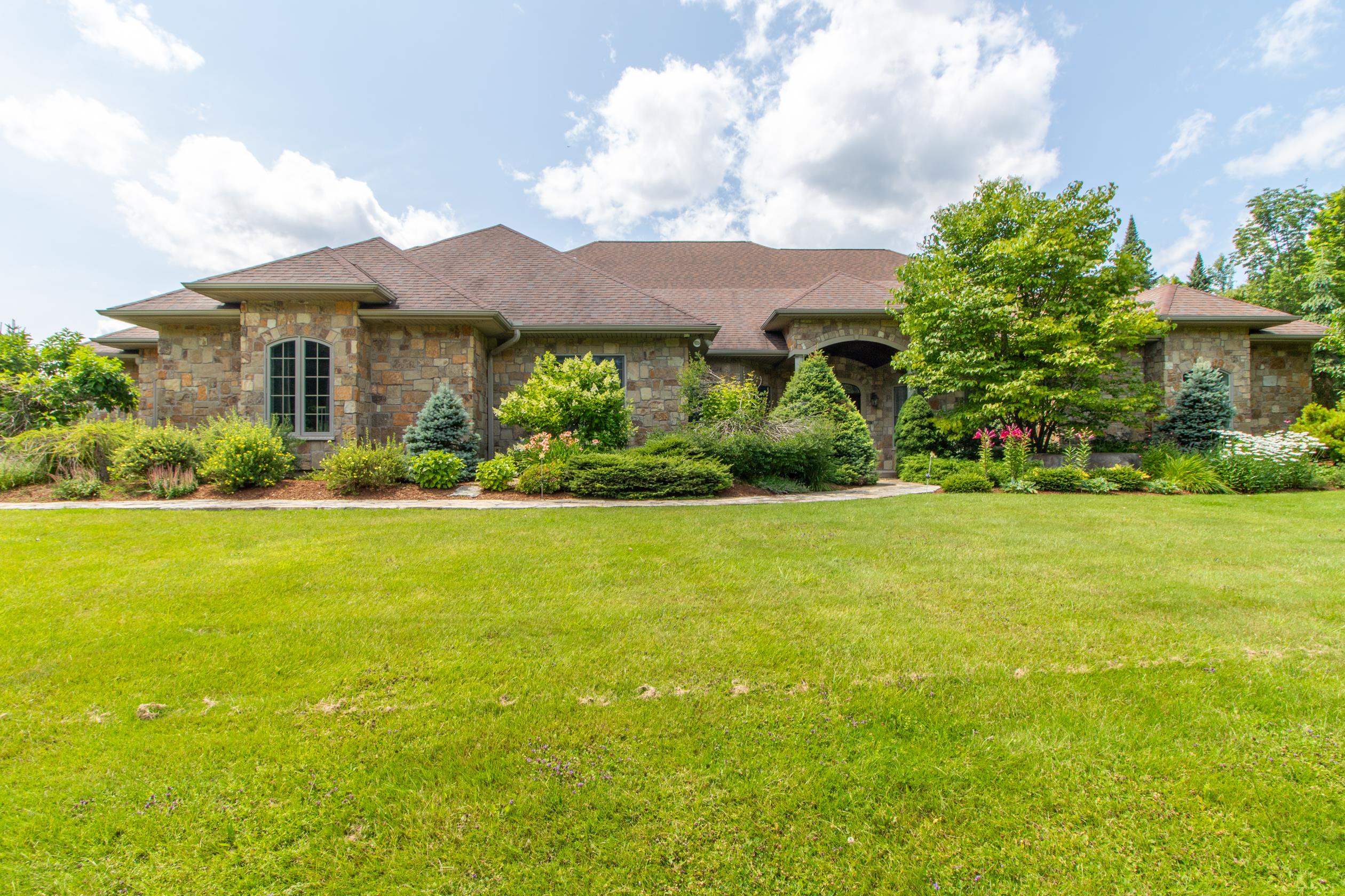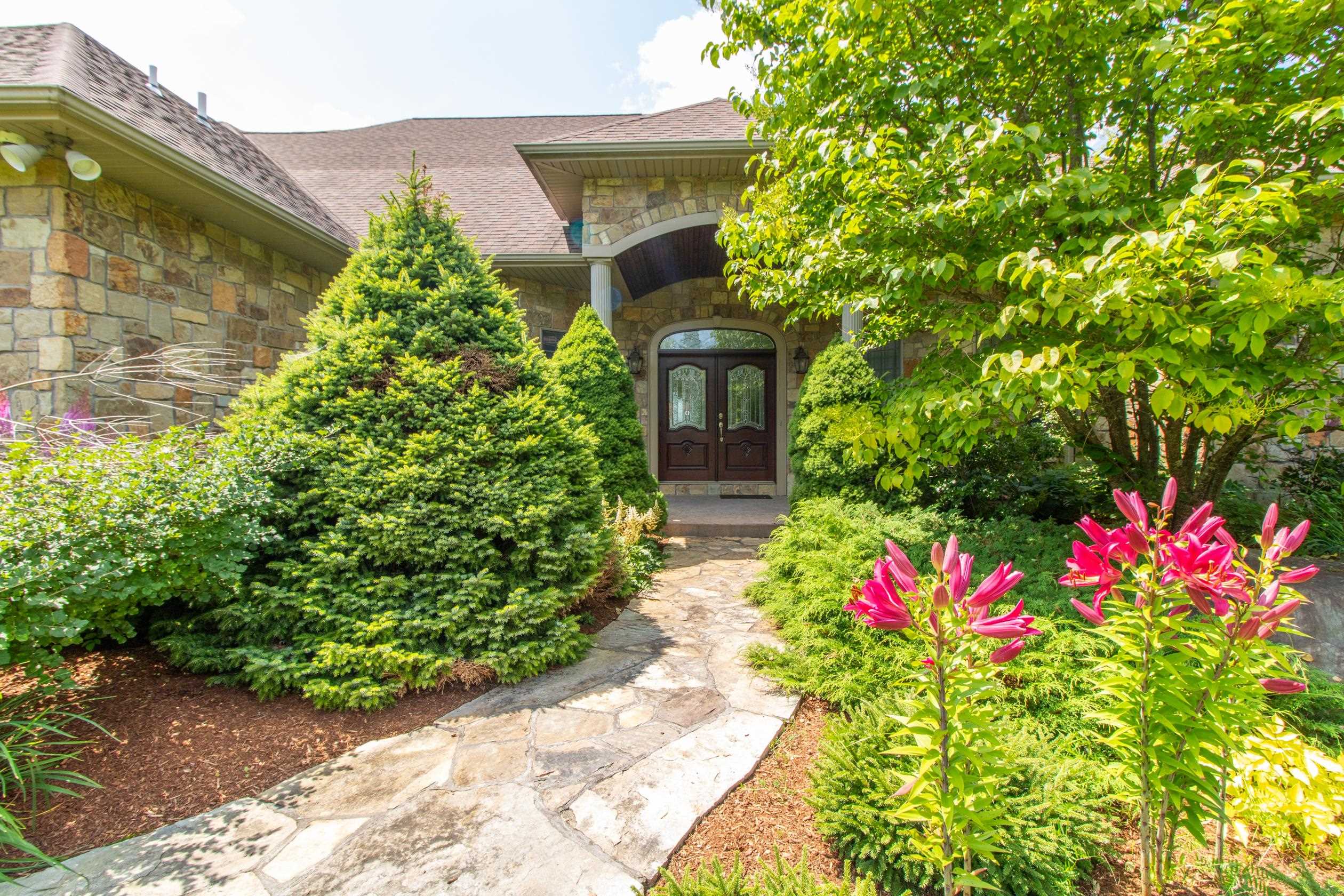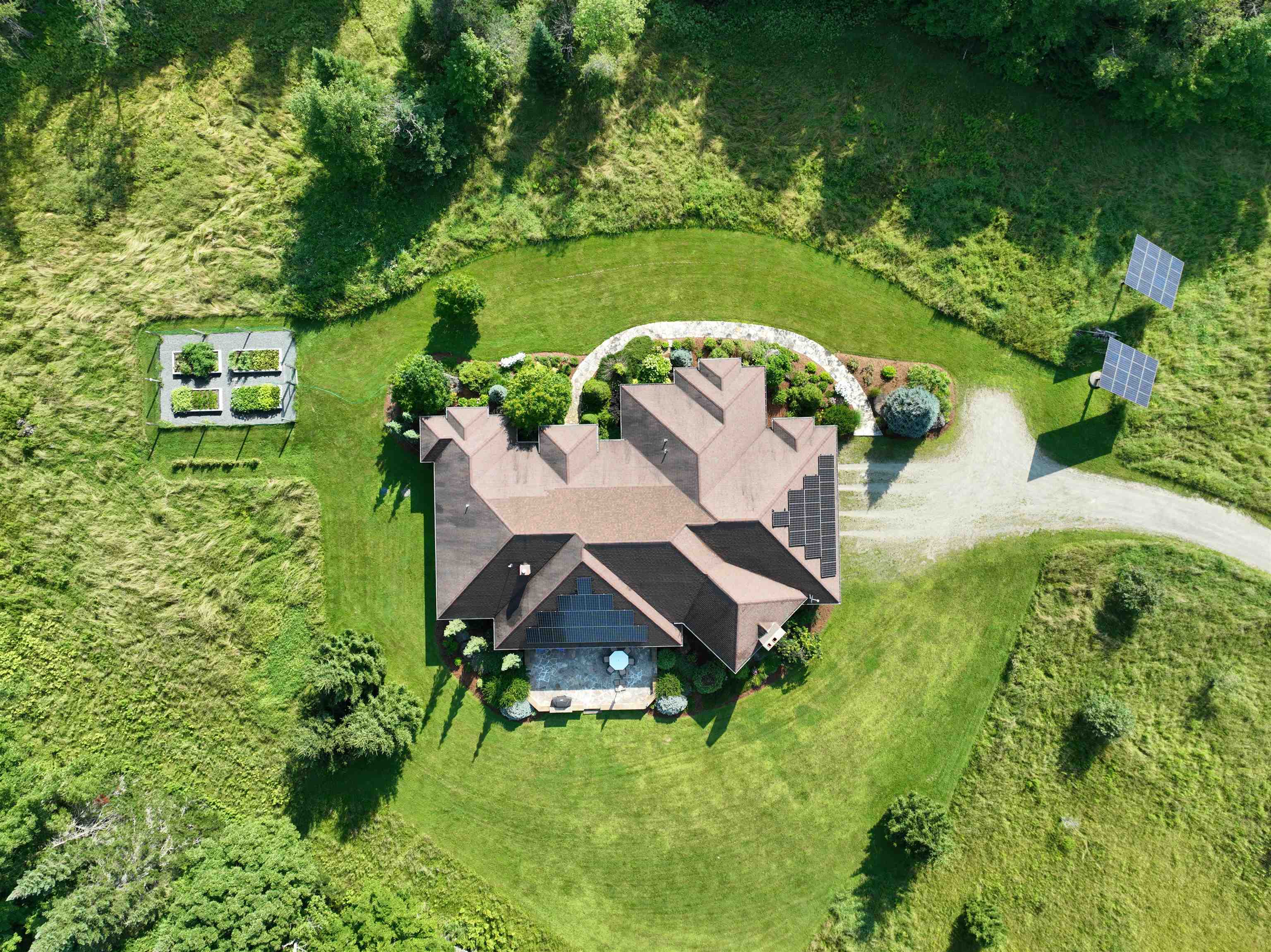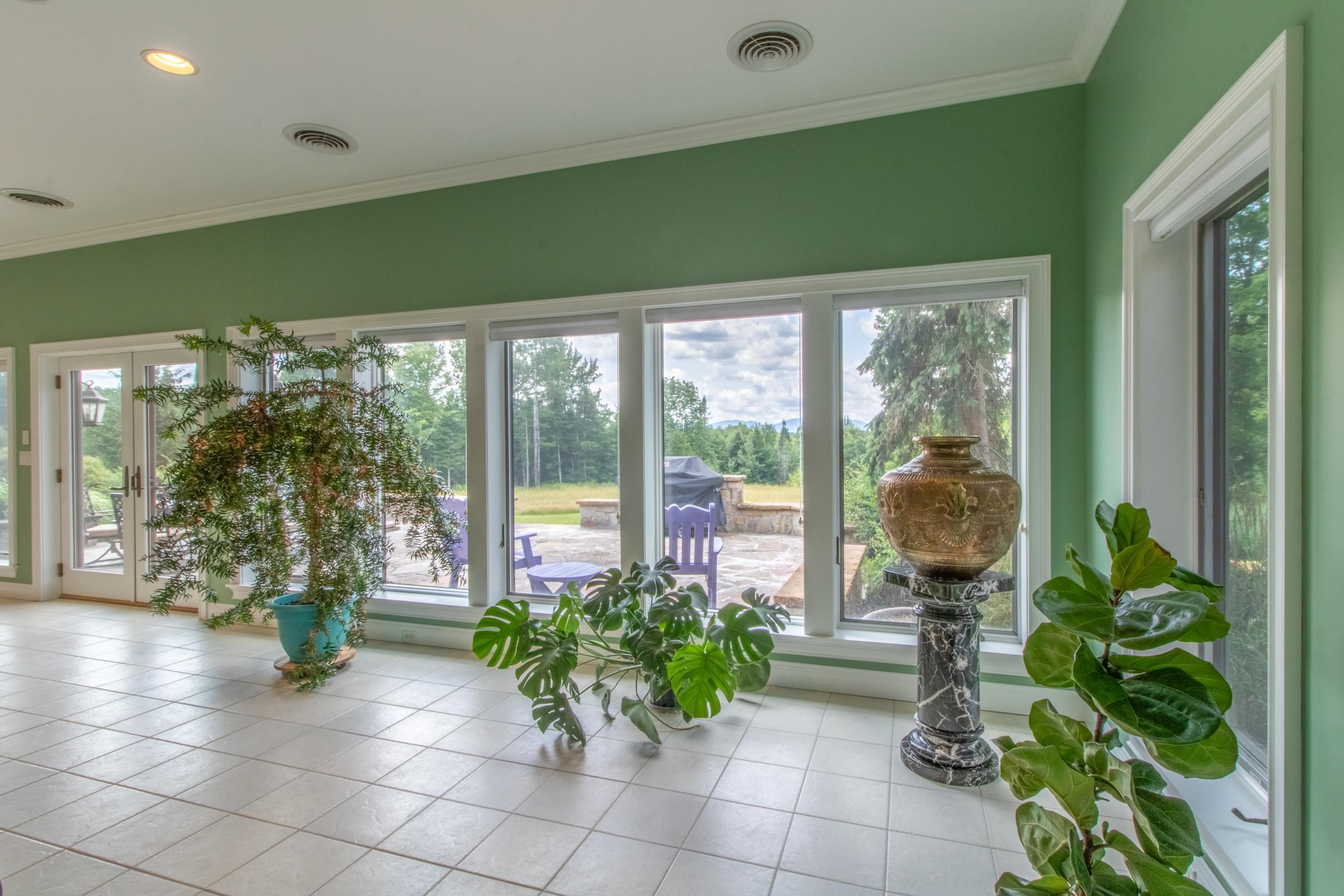 Set on 160+ acres with gorgeous views of Jay Peak and the surrounding mountains, this extraordinary 4, 000+ sq. ft. contemporary estate offers privacy, sophistication, and sustainable living in Vermont’s Northeast Kingdom. The striking natural stone exterior sets the tone for the elegance inside, where Australian cypress and slate floors, 10’ ceilings, and crystal chandeliers create timeless refinement. The gourmet kitchen is a chef’s dream with full-size Miele refrigerator and freezer, double wall ovens, and induction cooktop. Relax in the family room beside the wood-burning stone fireplace or enjoy year-round light in the sunroom with its floor-to-ceiling windows. The primary suite is a retreat of its own, featuring Brazilian cherry floors, spa-like marble bath, home office, and expansive walk-in closet. Guests enjoy a private wing with two bedrooms and Jack & Jill bath. Modern comforts include solar power with three Tesla Powerwall batteries, geothermal heating and cooling, and a heated walkway. Outdoors, a fenced organic garden, quartzite patio, and unforgettable sunsets make the most of the property’s natural beauty. With a conservation easement and forest management plan in place, this estate combines lasting privacy with responsible stewardship. Rarely does a home unite luxury, sustainability, and scale at this level—an unparalleled Vermont retreat.