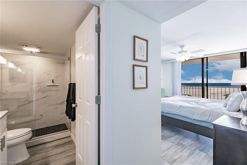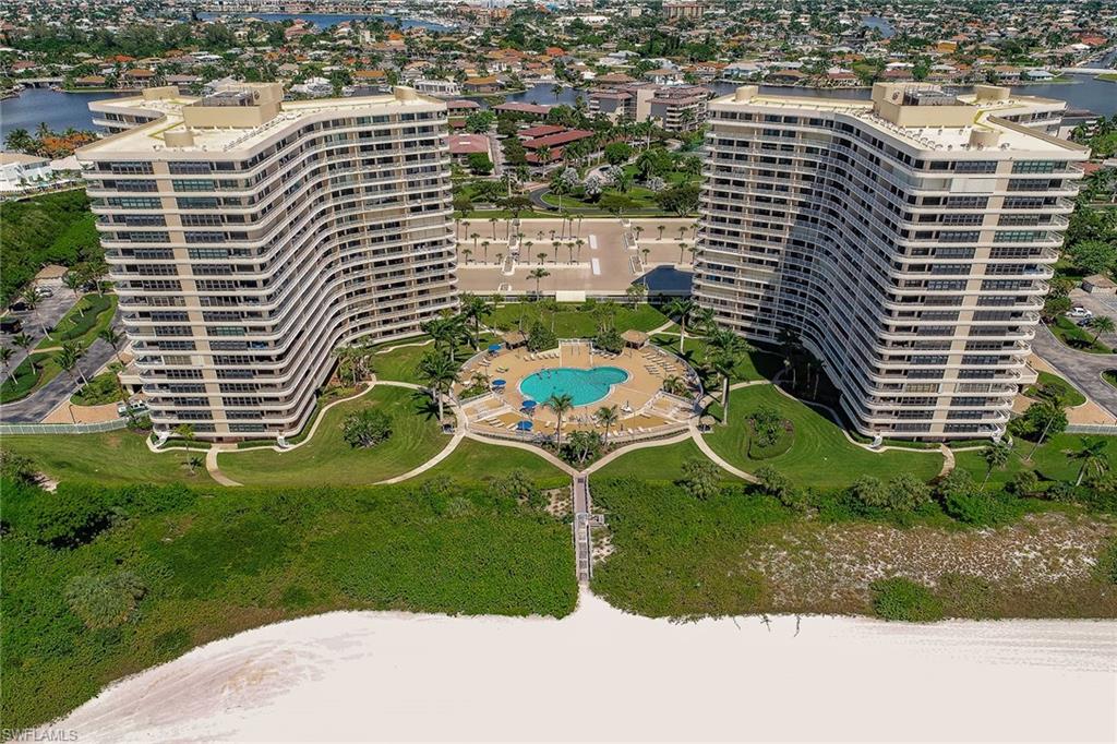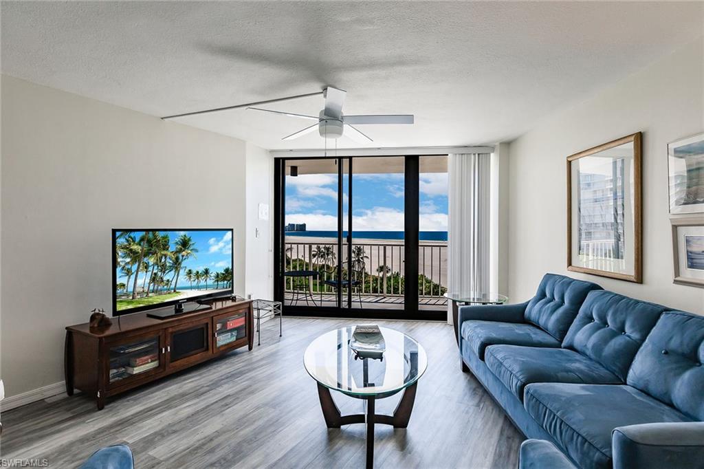 As seen on Fox News' lifestyle show "Out About in SW Florida". Beachfront with Spectacular Views! 2 bed/2 bath condo with SW exposure for ample light. Beach views from living room, primary bedroom, dining room, kitchen & balcony. Coastal renovation (2021). White Shaker cabinets with granite tops (kitchen & bathrooms). Stainless steel appliances. Engineered wood plank floors throughout. Impact windows & doors. Gated community in prestigious South Seas Towers. Weekly rentals allowed. Strong rental history (as high as $63, 429. 57/year). Heated resort pool overlooking the Gulf of Mexico with beach access. Covered garage parking. Fitness center, tennis/pickleball courts & optional boat slip rental available. Close to restaurants, entertainment, shops, ice cream and grocery store. Marco Island is famous for its white sandy beaches, boating, water sports, and wide sidewalks all over the island, great for walking & bicycling.
