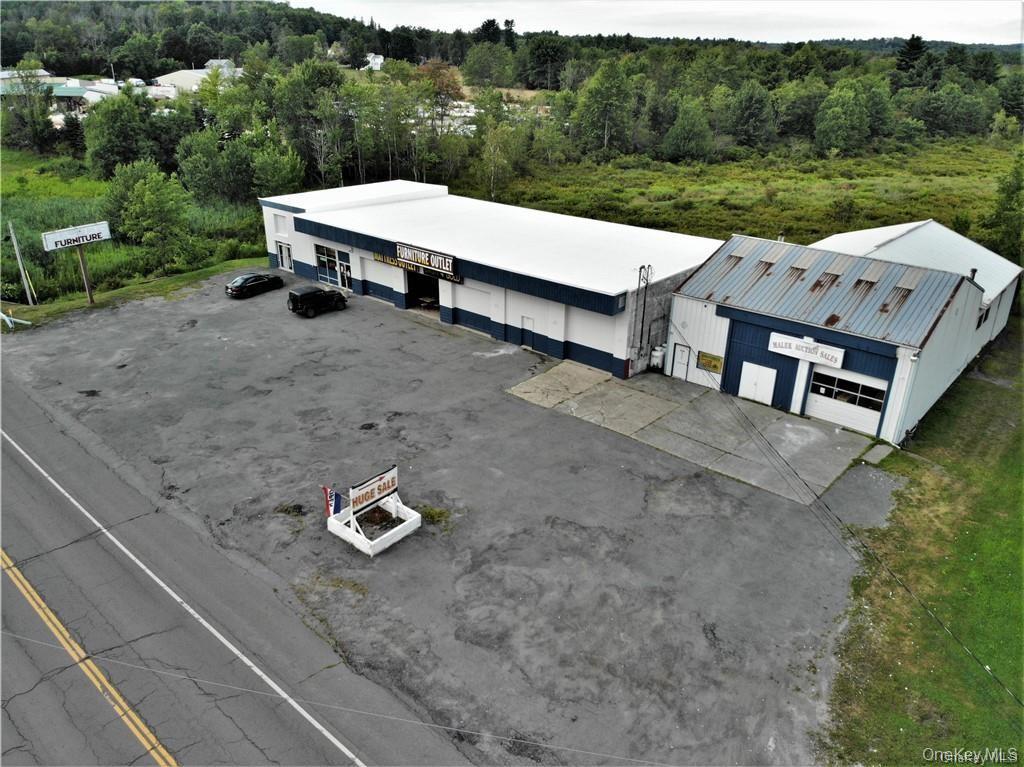 Lots of space with tons of parking in a busy area of Monticello, this offering is in an awesome location! Present use is furniture retail store/ warehouse. In the past this property was an auction house, used car sales and tire business. There are two separate buildings with three phase electric, that are connected. One is a Morton building with pitched roof built 1980, the other is a block building built in 1972 with a flat roof that was replaced in 2012. There are stairs to a loft space so there is a lot of extra square footage on "second" story. There is also a separate unit (connected to larger building) that appears to have been an addition with a separate entrance and a second story. A large "cold storage" area at the back offers even more space for storage. Ceilings are 18+/- feet high in one part and over 20 feet high in the other part. High visibility location near numerous businesses and very easy highway access. Can be seen from NYS Route 17 (Interstate-86). Awesome opportunity with many possible uses. Broker discloses interest.