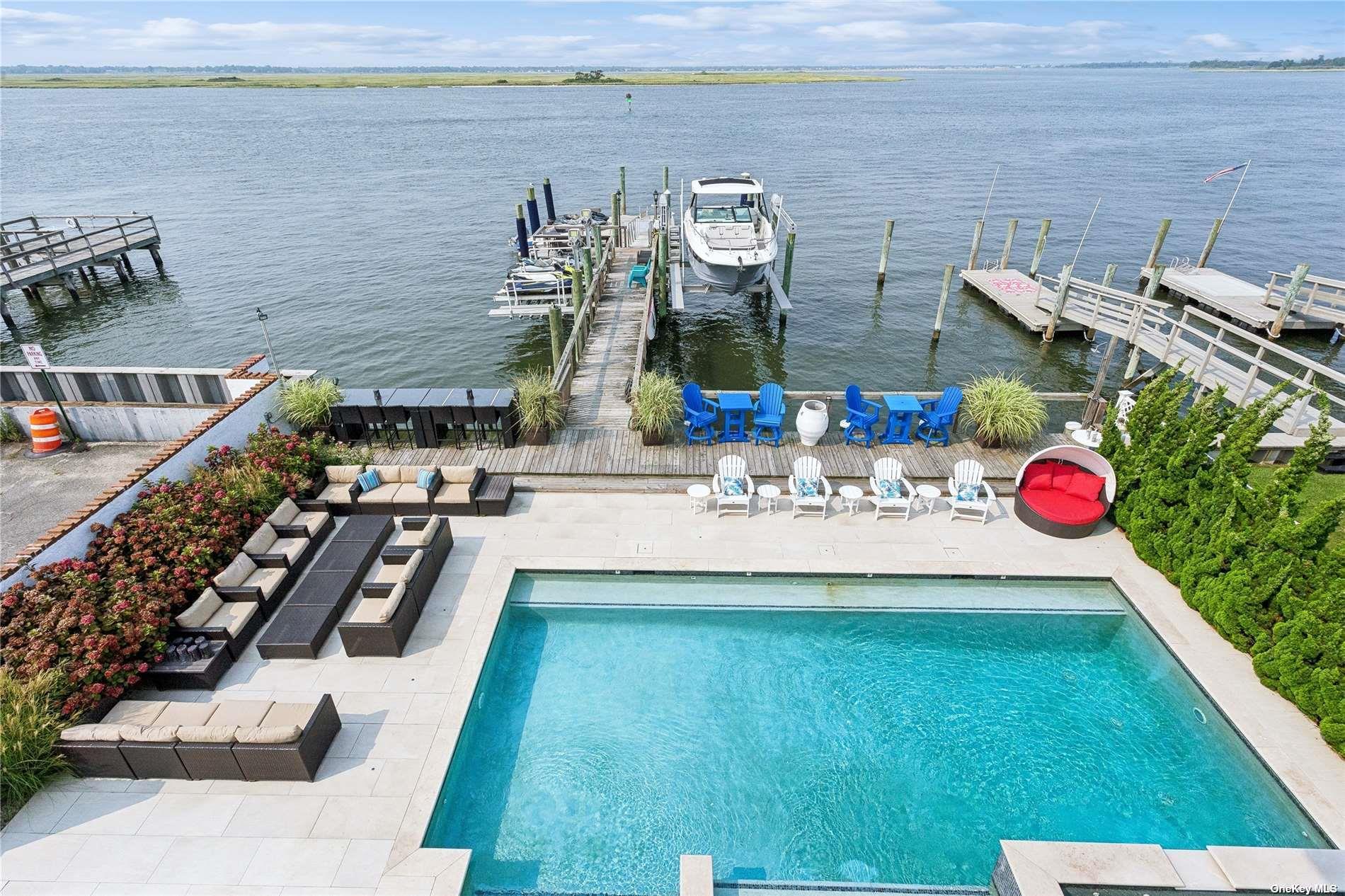Discover one of the most expansive bayfront properties in Long Beach, featuring exclusive private docking rights and set on a prime corner lot that offers breathtaking views of Reynolds Channel, the city skyline, and spectacular sunsets. First Floor: Step into a grand entry hall and enjoy the convenience of a three-car garage with an electric car charging port, ample storage closets, an elevator, and plumbing provisions for a future bath. An exceptionally large outdoor patio with half of it covered provides a perfect space for entertaining. Second Floor: The chef's kitchen is a culinary dream, equipped with top-of-the-line appliances including Sub-Zero refrigeration, Wolf oven range, and Miele appliances. This level also includes a comfortable living room/den, a formal dining room, a media room, a guest bedroom with an en-suite bath, a half bath, and a cabana bathroom. The elevator is easily accessible on this floor. Third Floor: The luxurious master bedroom suite features an office, a fitness area, and a wet wine bar, along with a private deck offering stunning views. This floor also includes an additional bedroom, a full bath, two Jack and Jill bedrooms with a shared bath, and a children's playroom complete with a secret door. Fourth Floor: Enjoy panoramic views from the incredible rooftop deck with durable Trex flooring. The property boasts a generous 63x145 waterfront expanse with a dock, a floating dock, and jet ski ramps. Experience unparalleled bayfront living!, Additional information: Appearance: MINT, Interior Features: Guest Quarters, Lr/Dr
