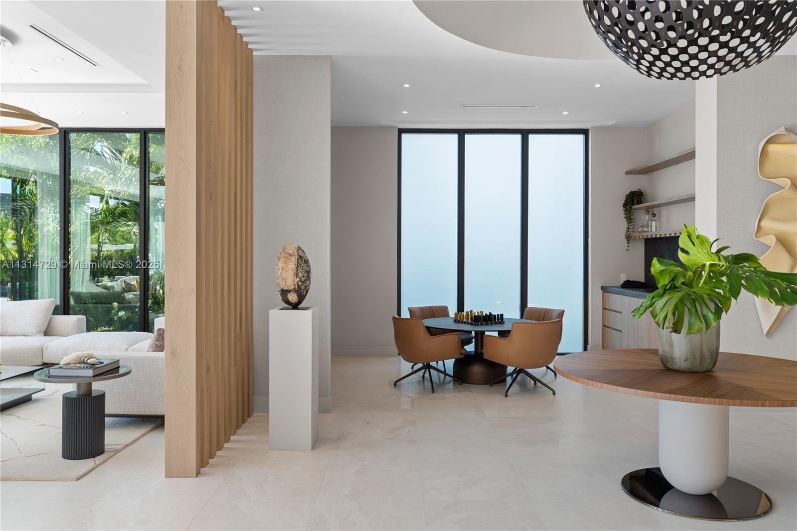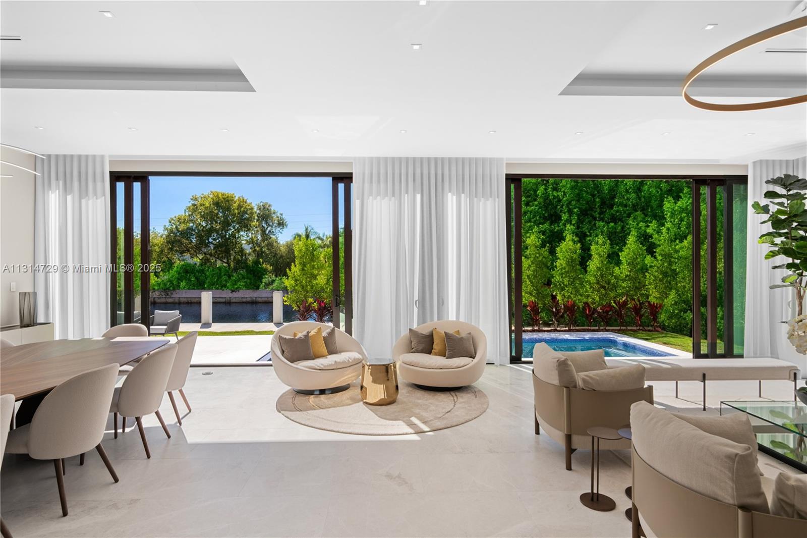 NEW BUILD ORGANIC MODERN WATERFRONT ESTATE IN THE HEART OF EASTERN SHORES! Modern Tropical Oasis in Light Natural Wood Encompassing 5 Bedrooms + 5 Baths + Powder Room in 5, 796 Interior SF on 8, 800 SF LOT with 80 FT of Waterfrontage. Enter into Open Floorplan with Calacatta Marble on Ground Floor. Enjoy Expansive Entertaining Spaces + Wine Cellar & Direct Water Views. Organic Wall Textures Throughout. Staircase Leads to Spacious Primary Suite Overlooking the Water. Custom Italian Kitchen Accented with Organic Light Wood with Oversized Island Countertop. Primary Bath with Hansgrohe & Duravit Fixtures + Rainshower. Deck Perfect for Entertaining with Heated Pool & Summer Kitchen. Minutes Away from Sunny Isles Beach, Aventura Mall, Dining & Oleta River State Park. Delivers Q2 of 2025.