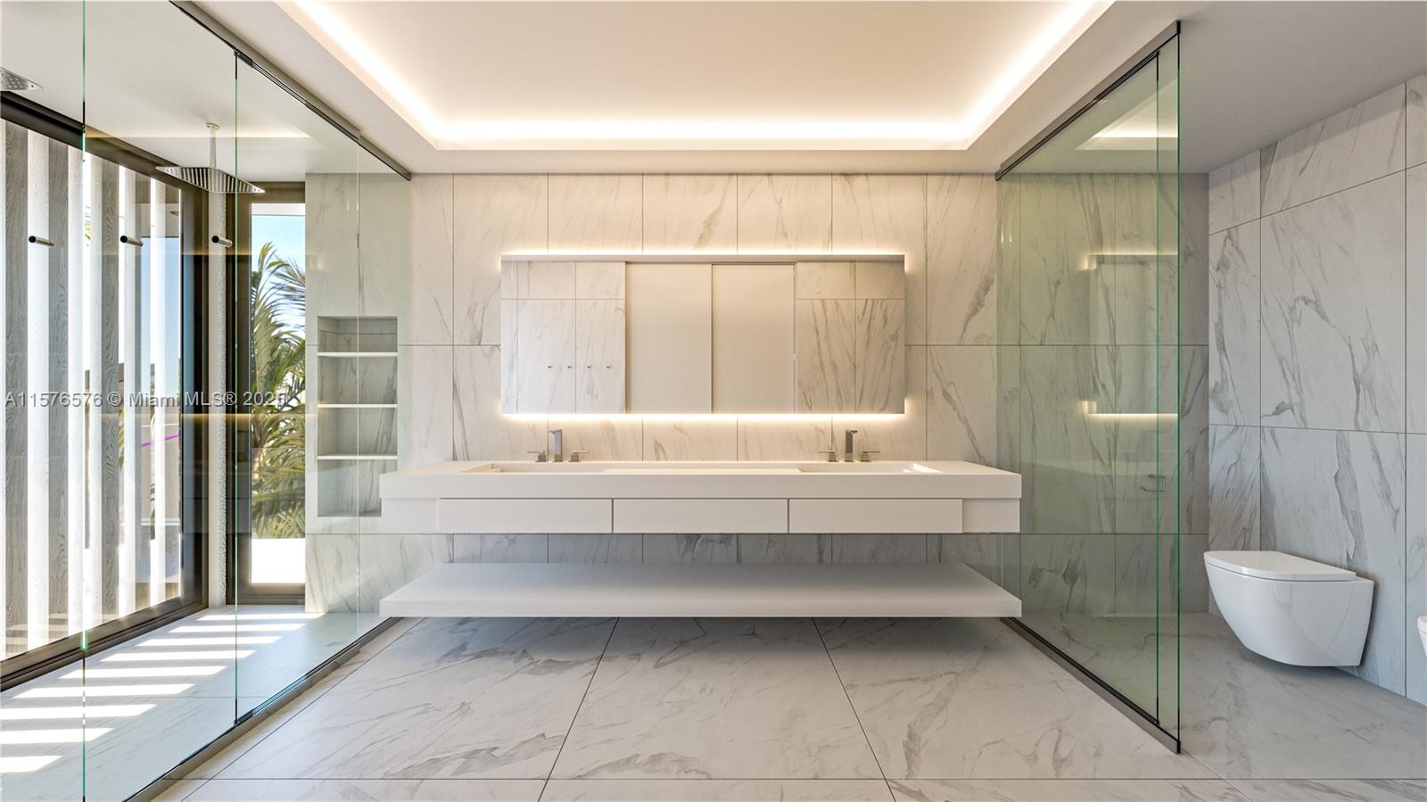 NEW BUILD MODERN WATERFRONT ESTATE IN THE HEART OF EASTERN SHORES! Modern Tropical Oasis w/ 5 Beds + Den + 6 Baths + Powder Room in 6, 005 Interior SF on 11, 270 SF LOT w/ 170 FT of Waterfrontage. Open Floorplan Wrapped in Ivory Wall Textures featuring Entertaining Spaces + Wine Cellar & Direct Water Views. Soaring Ceilings w/ Recessed Lighting & Drop Ceilings. Calacatta Flooring T/O Ground Floor. Custom Italian Kitchen w/ Oversized Island Countertop, Mocha Custom Paneling & SubZero SS Appliances. Primary Baths w/ Hansgrohe & Duravit Fixtures + Rainshower. Marble Staircase Leads to Primary Suite Overlooking Water. Separate Bar w/ Dichromatic Countertop. Entertaining Deck with Heated Pool. Minutes from Sunny Isles Beach, Aventura Mall, Dining & Oleta River State Park. Delivers Q3 of 2025.