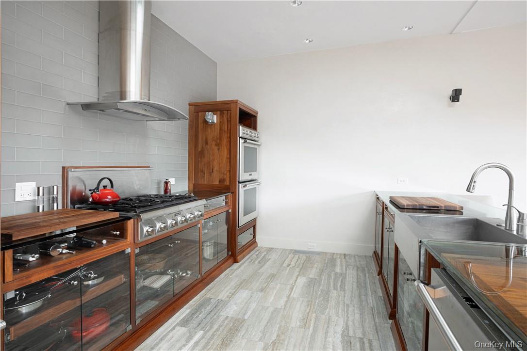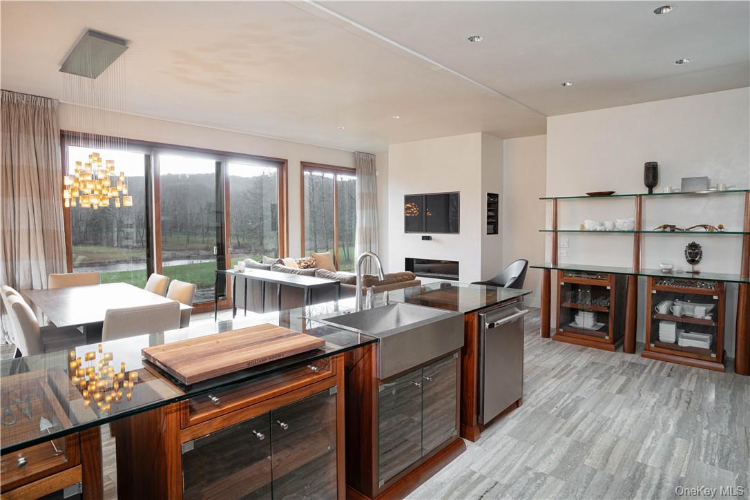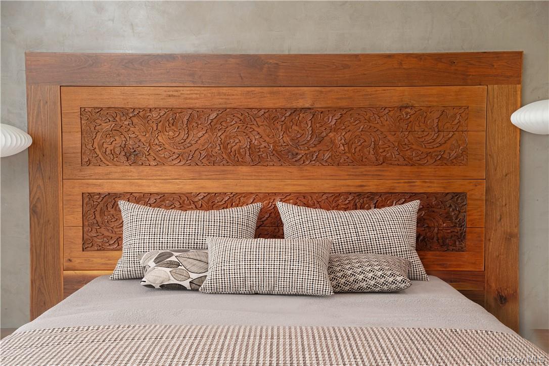 This distinctive copper-clad home comprises 2 bedrooms and 1 bath, showcasing meticulous craftsmanship with handcrafted Black Walnut woodwork imported from Thailand. As you step inside, the attention to detail is immediately evident, highlighted by floor-to-ceiling windows adorned with custom drapes, glass countertops, a gas fireplace, and radiant heated floors throughout. The kitchen is equipped with top-of-the-line Thermador appliances, ensuring a premium culinary experience. The home also features an automatic generator, providing peace of mind during power outages.