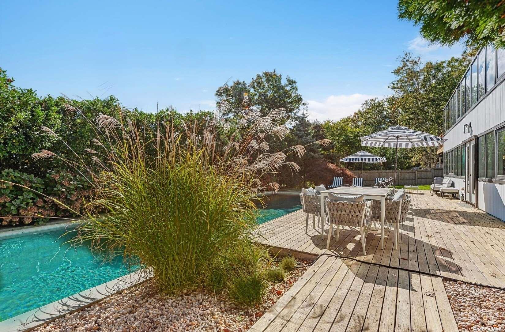 Immerse yourself in the ultimate resort-like living at 69 Three Mile Harbor Drive, offering convenient access to East Hampton's Sammy's Beach and a quick drive to elevated town living. This meticulously maintained 4, 000sqft contemporary style home offers a harmonious blend of luxury and comfort, ideal for discerning tenants seeking a serene off season or summer retreat. This professionally curated home boasts five spacious bedrooms and five and a half bathrooms, providing ample space and comfort for all guests. Four of the bedrooms are en-suite, while the fifth features its own private detached bath. The primary suite serves as a true sanctuary, complete with an en-suite bathroom, generous closet space, and a personal fireplace. Each additional bedroom is thoughtfully designed to ensure privacy and comfort. The heart of the home is the expansive living area, seamlessly integrating the living room, dining room, and gourmet kitchen. Large windows throughout the main level flood the space with natural light, creating a warm and inviting atmosphere. The dining area is ideal for hosting both formal dinners and casual gatherings, while the fully-equipped kitchen features a generous island that doubles as a breakfast bar with seating for eight. Step outside to the attached balcony, where you can cook al fresco on the grill and unwind by the propane fire pit, surrounded by two cozy lounging couches, perfect for outdoor entertaining. Ascend to the second level and discover three additional bedrooms, two en-suite, each designed for comfort and privacy. The oversized entertainment area is perfect for gatherings, complete with a convenient wet bar that seamlessly connects to the backyard oasis. Open the French doors to reveal a stunning 45' gunite pool, surrounded by mature hydrangeas and mahogany decking, creating a picturesque setting. The coastal landscape enhances the serene atmosphere, featuring a spacious patio, two fire pits, and plenty of poolside lounging and dining options. With a well-maintained lawn as a backdrop, it's an ideal spot for relaxation and outdoor activities. Located just minutes from bay access and a short drive to East Hampton's Main Street, known for its world-class boutique shopping and fine dining, this home is ideal for those who love to entertain or simply unwind in complete privacy. The homeowner is open to accommodating any and all rental periods, making it a versatile option for your ideal getaway. Available MD-LD $140k, May $18k, June $30k, July $55k, August $60k, August-LD: $65k & any two weeks off season for $12k.
