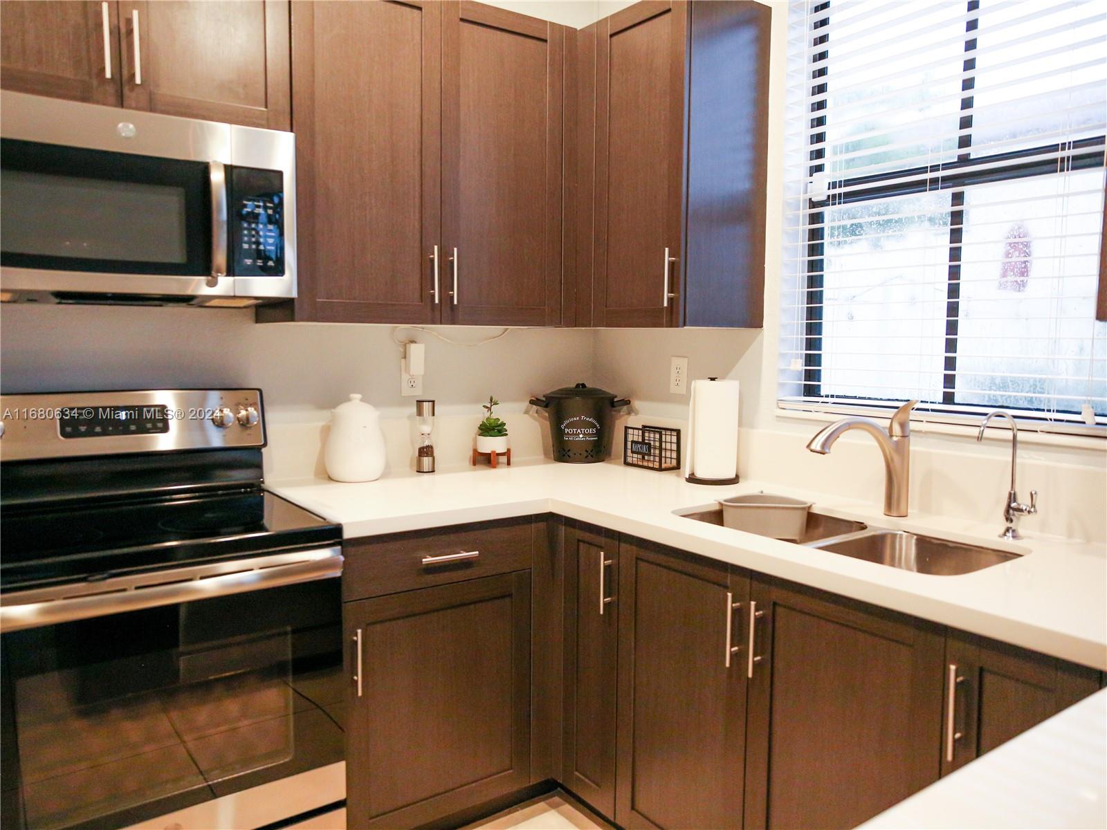 RARE CORNER UNIT: Unmatched opportunity to own a rare corner townhouse in sought-after Aquabella community. Built in 2019, this 2-story home offers 3 beds/2. 5 baths, with all bedrooms on the second floor. The first floor is tiled with the second floor carpeted for comfort. Features include a one-car garage, 3 extra parking spaces, SS appliances, quartz countertops, double vanity, walk-in closet, laundry closet, turfed backyard with pavers, ADT security system, keyless entry, impact windows, water filtration system/reverse osmosis/water softener, WiFi extender, and new AC coils. This gated community offers many resort-style amenities such as pools, kids water park, clubhouse, gym and much more. Ideally located with access to all major highways and prime shopping. This rare home won't last!