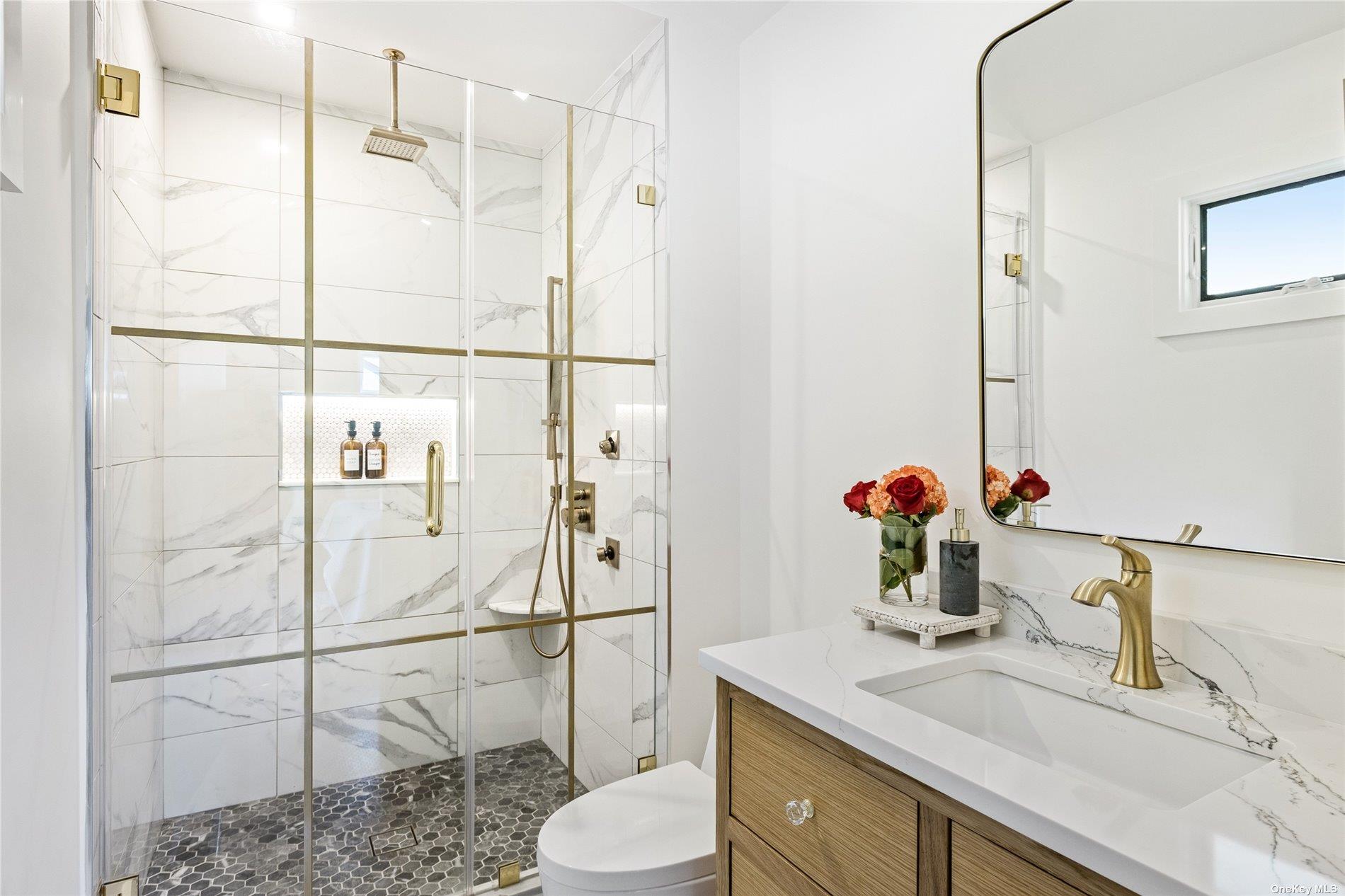 This beautifully renovated modern farmhouse offers a seamless blend of style and comfort. The main level offers an open layout featuring vaulted ceilings, island kitchen with custom cabinetry, quartz counter tops and stainless-steel appliances including a six-burner gas range with hood; An abundance of windows bring in plenty of natural light and the dining space boasts sliding glass doors connecting to the to the rear deck creating a seamless indoor/outdoor living concept. Off the hall there are three bedrooms and two and a half baths including an en-suite with walk in closet and direct access to the rear yard. The lower level has been beautifully finished and is equipped with a home gym, office space, recreation room and two additional bonus spaces flexible to your needs. Outdoors, you're greeted with a pristinely landscaped yard that is fully fenced in for the utmost privacy. There is a large, covered deck outfitted for relaxation, BBQ and al fresco dining, as well as a heated in ground gunite pool and outdoor shower. This home is impeccably furnished and equipped with all you need for an easy summer vacation. Conveniently located just moments from renowned ocean and bay beaches, waterfront dining and boutique shopping, as well as a short drive to Southampton and Westhampton Beach villages. An ideal summer getaway. MD-LD $70k Jun $15K Jul $30k Aug-LD$30k