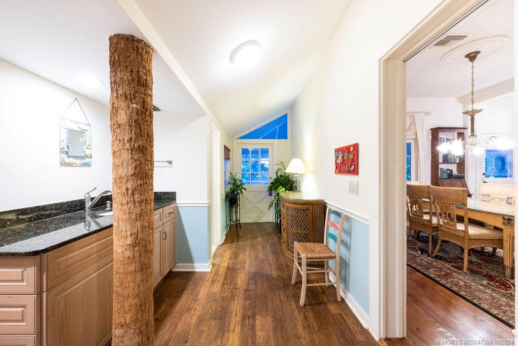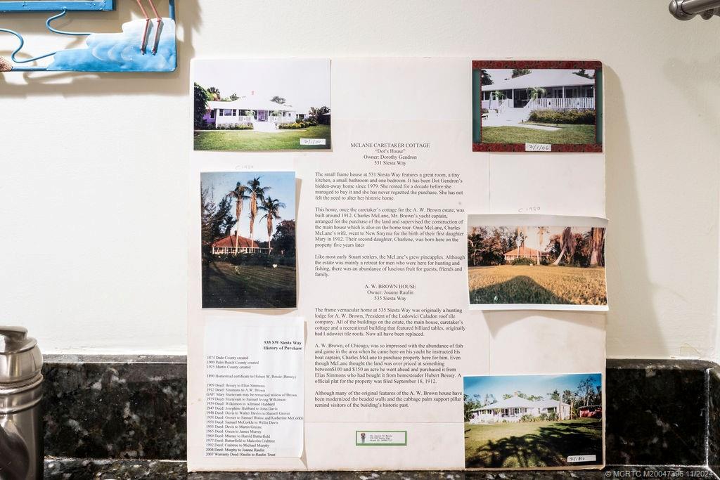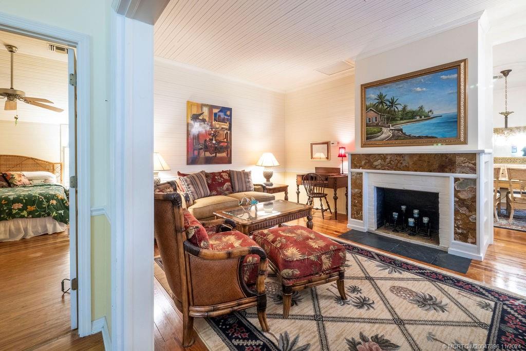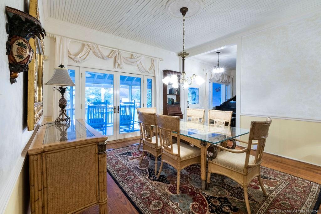 Esca?? to this ?nch?nting L?w Country style home. St?p b?ck in time & enjoy the grandeur of this classic 1910 beauty. Gorgeous Dade County pine floors, grand, voluminous ceilings, decorative, nostalgic fireplace. Huge master bedroom w/2 closets plus a walk in 15'+ closet(dbl as office, nursery, craft rm)+ oversized master bathrm w/jetted tub, sep. shower, 2 vanities. Large formal dining rm. Step into the living room or hideaway in the sitting room. Enjoy cooking in the immense open country kit. w/bead board ceiling. Bench seat in picture window. Mud room off kit. w/1/2 bath+access to front & back porches. (could also be wet bar)Fabulous, huge, screen, rocking-chair front porch will steal your heart!PLUS, sep. guest quarters w/full bath+laundry. Plus, deeded easement to the St. Lucie River w/ shared pier+ your own slip w/sep. electric+water. DO NOT WALK ON DOCK AT THIS TIME. IN NEED OF REPAIR. 1 car gar. Gazebo. Whole home generator. Serenity!1/2 acre lot, dead end st. , walkable to Downtown Stuart. Main ho=3/3. 5+1/1guest ho