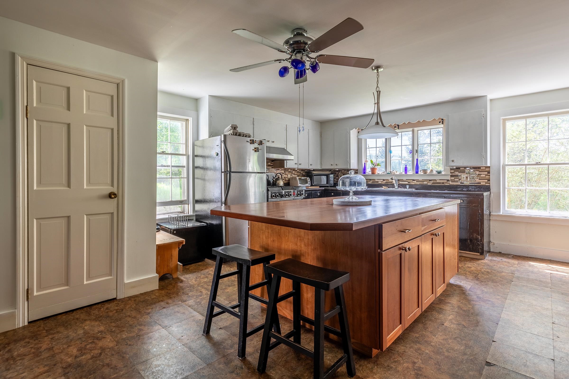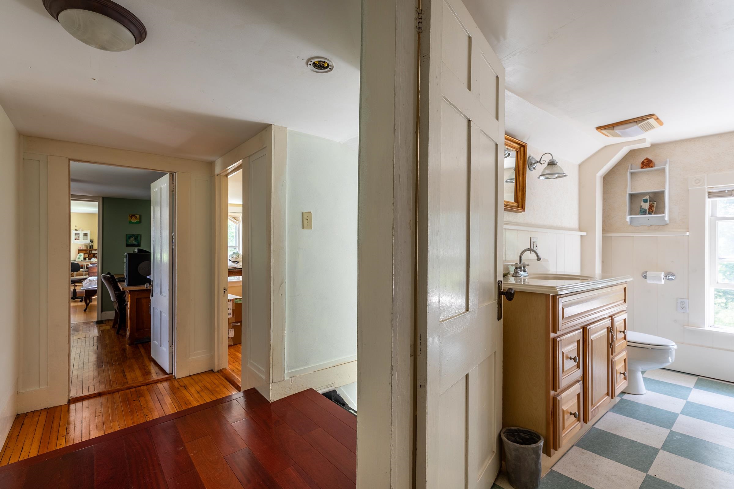 Antique charmer in the village of East Dorset was originally built in the 1850s by famous lumberman, F. G. Harwood. An addition was added in 1900, followed by several improvements over time the colonial farmhouse boasts approximately 3, 861 sq. ft. including an oversized two car garage all on 1. 1 acres. With a sprawling footprint that features a primary bedroom suite with oversized closet, 4 additional bedrooms, 3 1/2 baths, a formal dining room, large living room as well as front parlor. The large kitchen with a center island, 6 burner gas range opens to a deck patio on one side and the large garage on the other. Most of the wood floors are Brazilian cherry, combined with antique maple upstairs, and pale bamboo in the primary suite. There is a feel of the rambling farmhouse in this home, artfully combined with the contemporary elements and comforts. Just a short distance to Manchester, this large , yet cozy home would make the perfect place for a growing family, or to develop into multiplex housing with a few units, as there is already the footprint of a duplex here with two kitchen hook-ups, basements, and furnaces. Recent zoning changes will make this home “mixed-use residential”, opening up a host of creative possibilities for small business as well as housing. Great location & excellent school choice. Worth the trip!